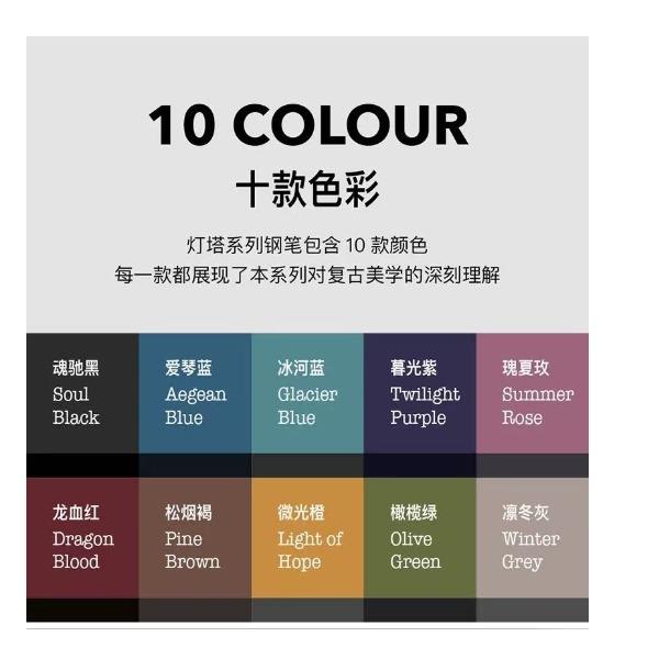 型号:灯塔系列墨水笔 类型:螺纹上墨式墨水笔 重量:墨水/宝珠笔43g/47g 颜色分类:微光橙凛冬灰橄榄绿爱琴蓝龙血红魂驰黑 书写粗细:F尖 套餐类型:官方标配 包装方式:鸿运笔记本礼盒装 适用场景:送礼书写钢笔笔尖成分:铱金笔 /地区:笔尖种类:标准型 适用人群:商务办公人士 上墨方式:旋转吸墨笔杆材质:金属笔尖嵌入方式:明尖 笔身纹理:格子纹墨水材质:非碳素墨水