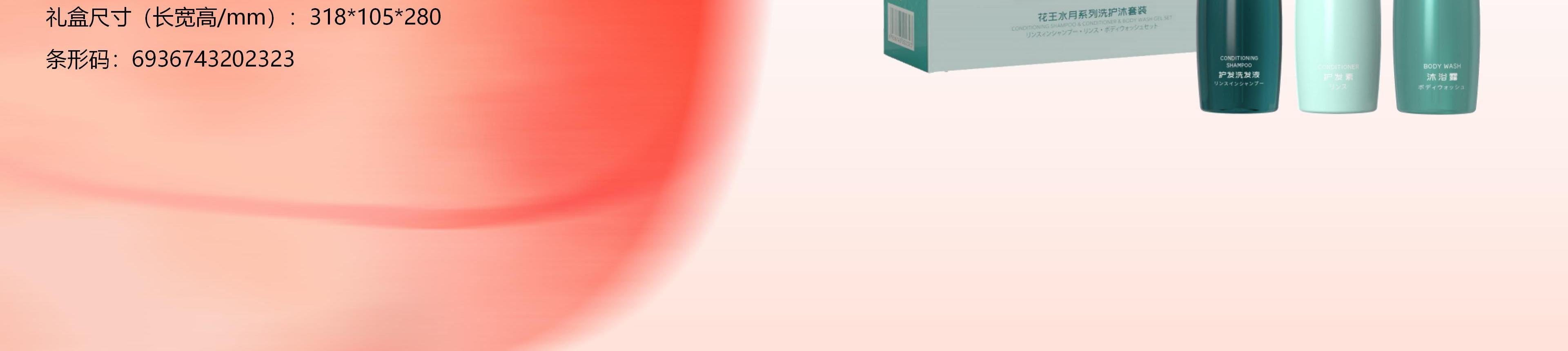 配置明细: 花王(KAO)护发洗发液630g*1 花王(KAO)沐浴露630g*1 花王(KAO)护发素630g*1 精美礼盒*1 礼盒尺寸(长宽高/mm):318*105*280