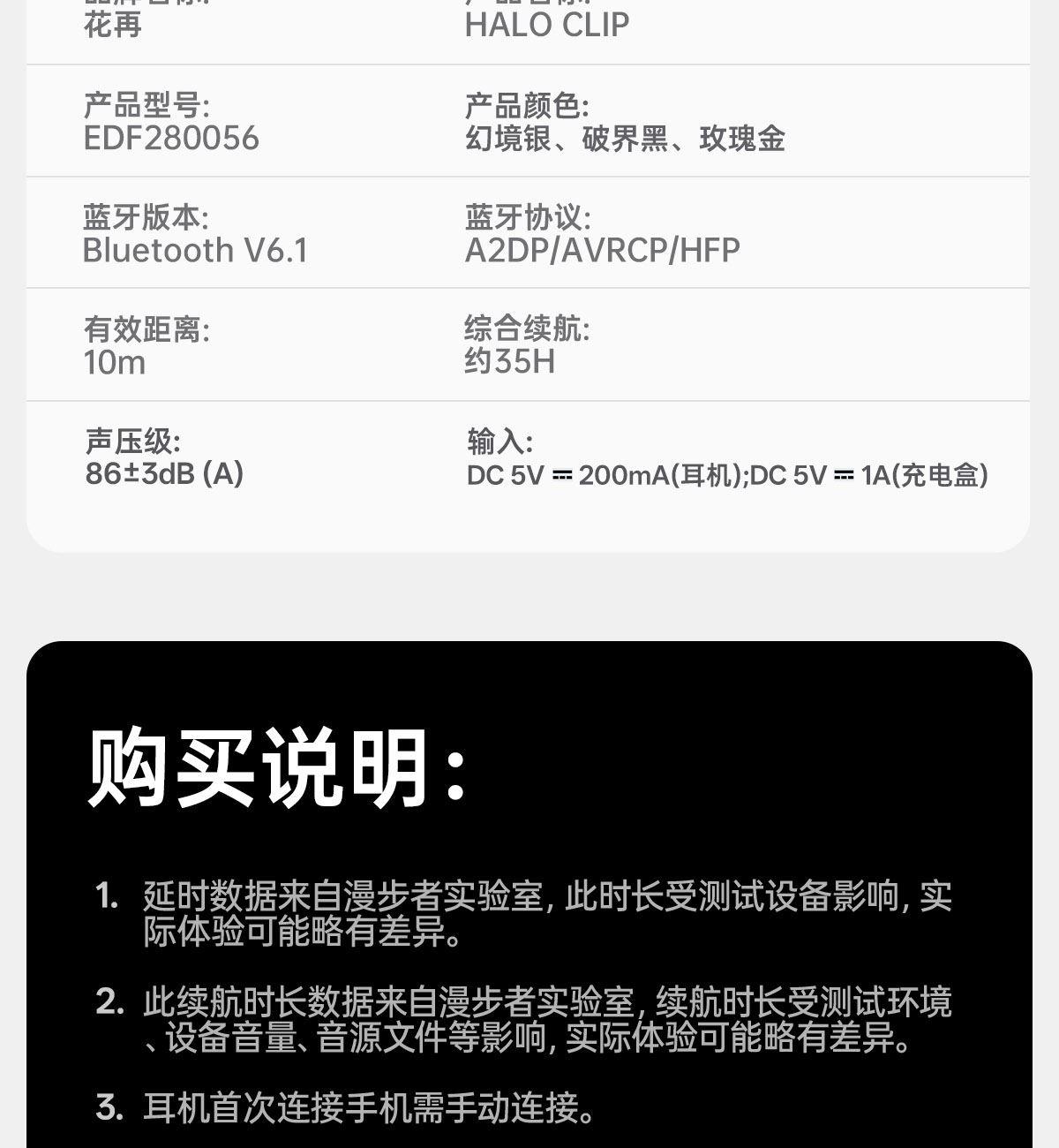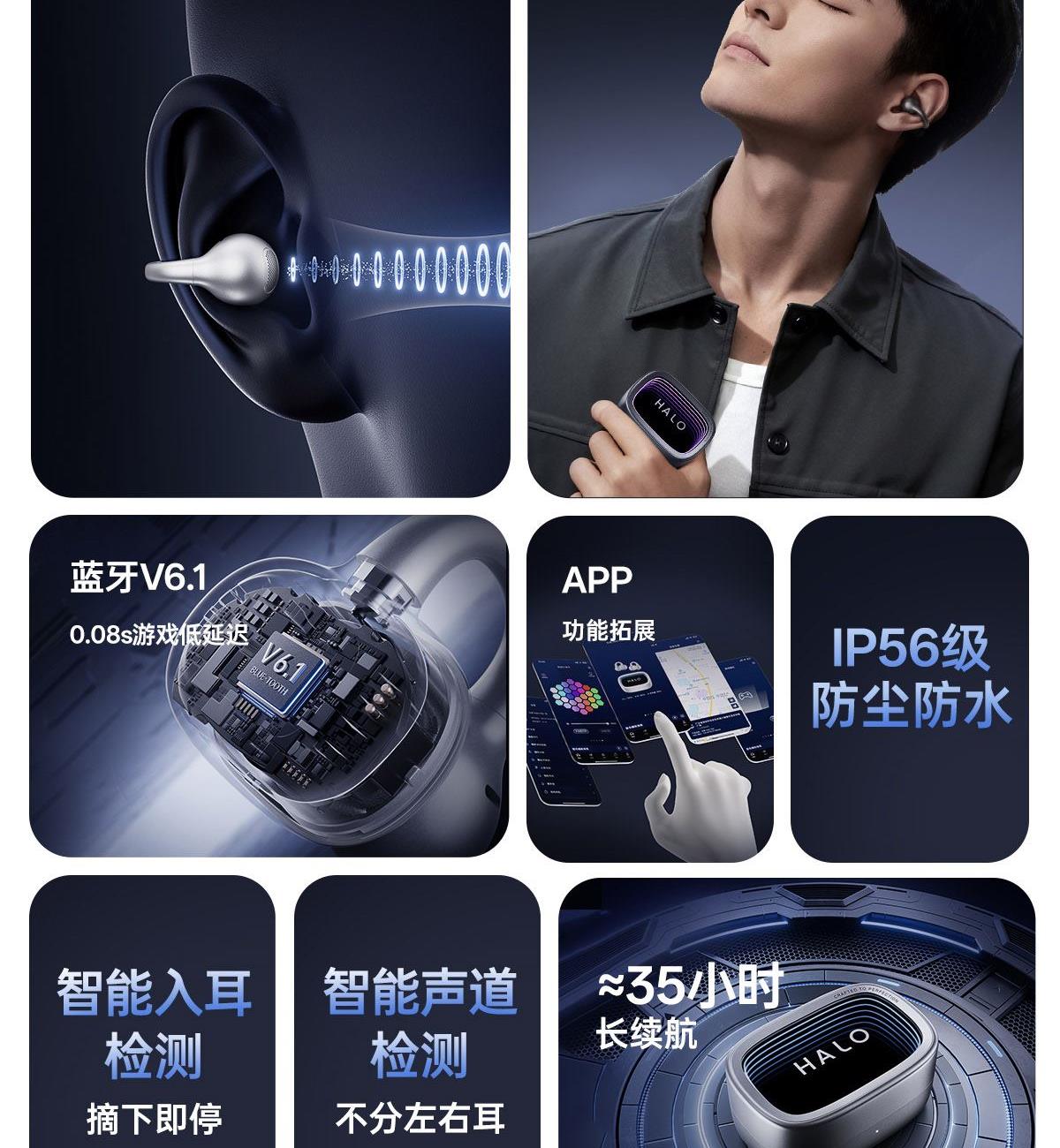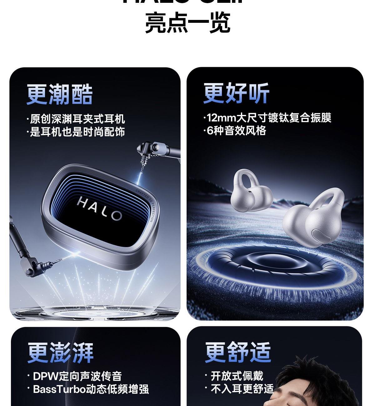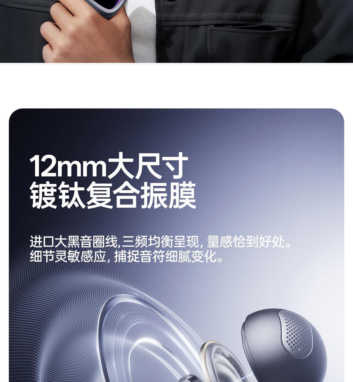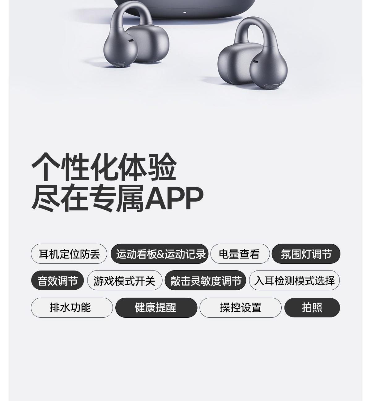 原创深渊耳夹式耳机 12mm大尺寸镀钛复合振膜 6种音效风格 DPW定向声波传音 BassTurbo动态低频增强 0.08s游戏低延迟 IP56级防尘防水