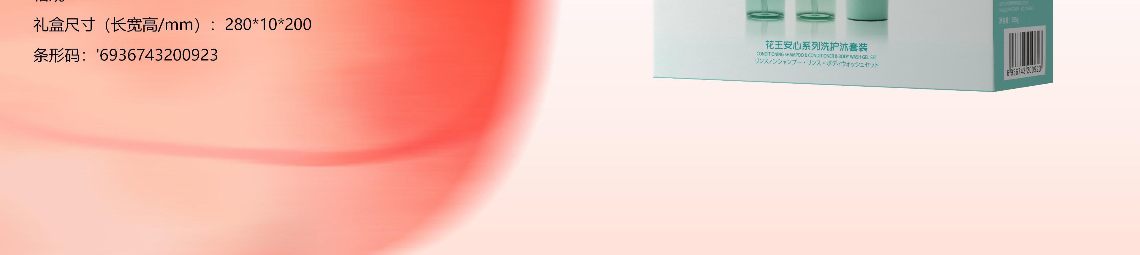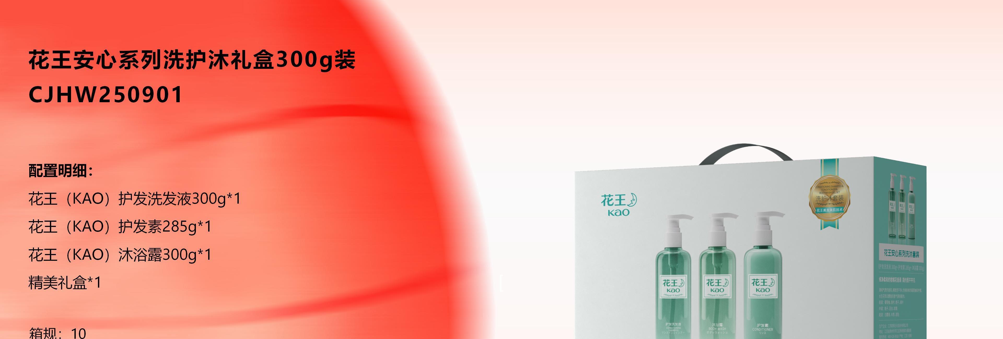 配置明细: 花王(KAO)护发洗发液300g*1 花王(KAO)护发素285g*1 花王(KAO)沐浴露300g*1 精美礼盒*1 礼盒尺寸(长宽高/mm):280*10*200