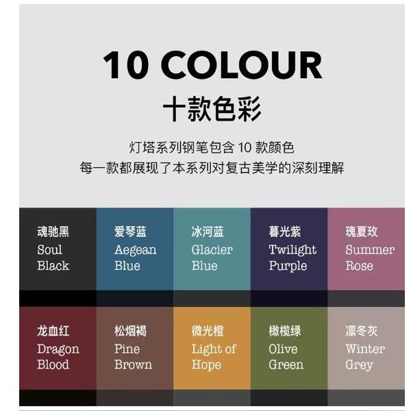 型号:灯塔系列墨水笔 类型:螺纹上墨式墨水笔 重量:墨水/宝珠笔43g/47g 颜色分类:微光橙凛冬灰橄榄绿爱琴蓝龙血红魂驰黑 书写粗细:F尖 套餐类型:官方标配 包装方式:鸿运笔记本礼盒装 适用场景:送礼书写钢笔笔尖成分:铱金笔 /地区:笔尖种类:标准型 适用人群:商务办公人士 上墨方式:旋转吸墨笔杆材质:金属笔尖嵌入方式:明尖 笔身纹理:格子纹墨水材质:非碳素墨水