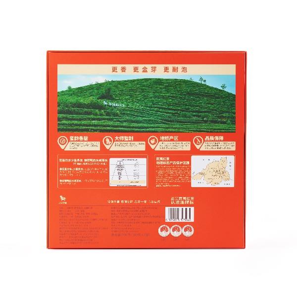 产品编码:D0350 产 地:福建·南平·武夷山 净 含 量:200 克(50 包) 质量等级:一级 保 质 期:36 个月 手 提 袋:红色礼袋 推荐理由: 干茶:金芽显露,条索紧结 茶汤:金黄明亮,金圈显 香气:甜香高扬,蜜香细柔 滋味:甜醇顺滑,回甘持久