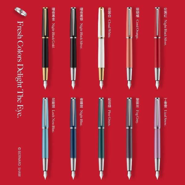 型号:星耀系列墨水笔 类型:螺纹上墨式墨水笔 重量:墨水/宝珠笔31g/35g 颜色分类:曜夜黑金曜夜黑银黎雾灰松苔绿夜幕蓝伦敦红珊瑚橘丁香紫尼斯蓝云雾白 书写粗细:F尖 套餐类型:官方标配 包装方式:鸿运笔记本礼盒装 适用场景:送礼书写 钢笔笔尖成分:不锈钢 /地区:笔尖种类:标准型 适用人群:文艺青年 上墨方式:旋转吸墨笔杆材质:金属笔尖嵌入方式:明尖 笔身纹理:磨砂墨水材质:非碳素墨水