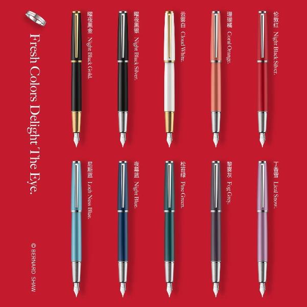 型号:星耀系列墨水笔 类型:螺纹上墨式墨水笔 重量:墨水/宝珠笔31g/35g 颜色分类:曜夜黑金曜夜黑银黎雾灰松苔绿夜幕蓝伦敦红珊瑚橘丁香紫尼斯蓝云雾白 书写粗细:F尖 套餐类型:官方标配 包装方式:鸿运笔记本礼盒装 适用场景:送礼书写 钢笔笔尖成分:不锈钢 /地区:笔尖种类:标准型 适用人群:文艺青年 上墨方式:旋转吸墨笔杆材质:金属笔尖嵌入方式:明尖 笔身纹理:磨砂墨水材质:非碳素墨水