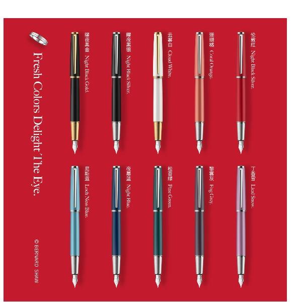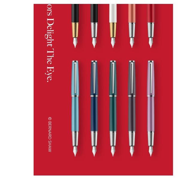 型号:星耀系列墨水笔 类型:螺纹上墨式墨水笔 重量:墨水/宝珠笔31g/35g 颜色分类:曜夜黑金曜夜黑银黎雾灰松苔绿夜幕蓝伦敦红珊瑚橘丁香紫尼斯蓝云雾白 书写粗细:F尖 套餐类型:官方标配 包装方式:鸿运笔记本礼盒装 适用场景:送礼书写 钢笔笔尖成分:不锈钢 /地区:笔尖种类:标准型 适用人群:文艺青年 上墨方式:旋转吸墨笔杆材质:金属笔尖嵌入方式:明尖 笔身纹理:磨砂墨水材质:非碳素墨水