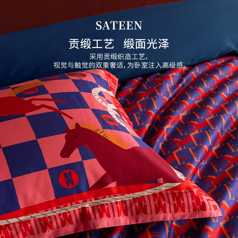 商品参数: 面料:100棉 规格:被套:200*230cm*1 床单:240*250cm*1 枕套:48*74cm*2 礼盒尺寸:42.5*35*11cm 纸箱尺寸:55.5*42.5*36.5cm 69码:6977317190059 马年系列,马为主题搭配中国节和ELLE元素,自在心意
