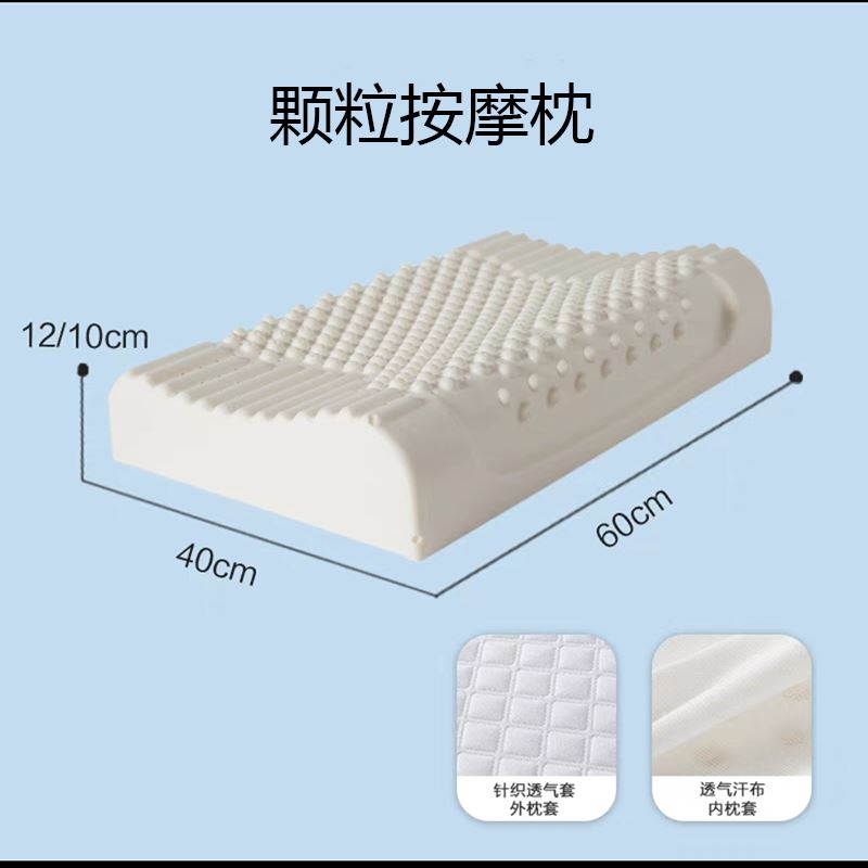 乳胶枕头是由天然乳胶加工制成的,它具有很好的弹性,透气性强,回弹力高,能够瞬间贴合颈椎。 着重按摩头部和面部肌肉,适合刚刚接触按摩枕芯人群。 枕套:针织面料 内枕套:聚酯纤维网 枕芯: 乳胶 规格:40*60cm