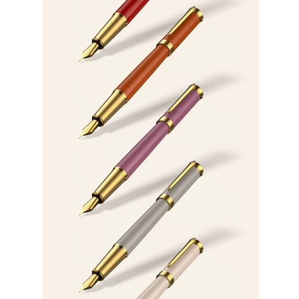 型号:荣光系列墨水笔 类型:螺纹上上墨式墨水笔 重量:墨水/宝珠笔43g/47g 颜色分类:开尔文黑/卡拉斯红/奥斯汀紫/加缪橙/伽利略蓝/卡夫卡灰/柏拉图白 书写粗细:F尖 套餐类型:官方标配 包装方式:鸿运笔记本礼盒装 适用场景:送礼书写 钢笔笔尖成分:铱金笔 笔尖种类;标准型 适用人群:商务办公人士 上墨方式:旋转吸墨 笔杆材质:金属 笔尖嵌入方式:明尖 笔身纹理:格子纹 墨水材质:非碳素墨水
