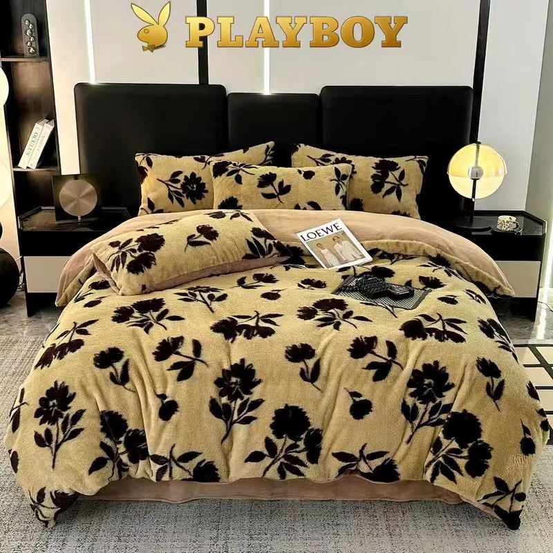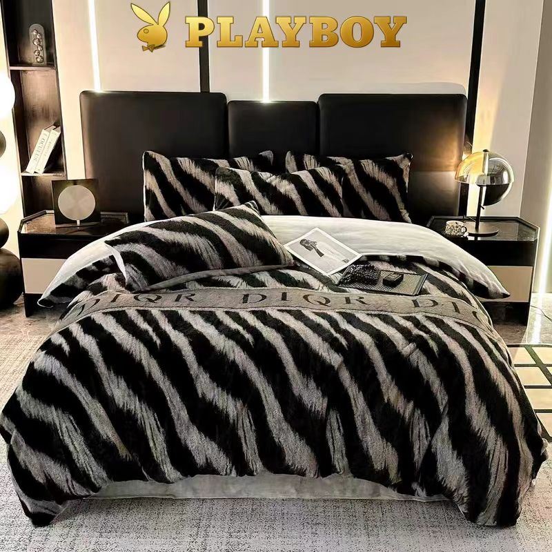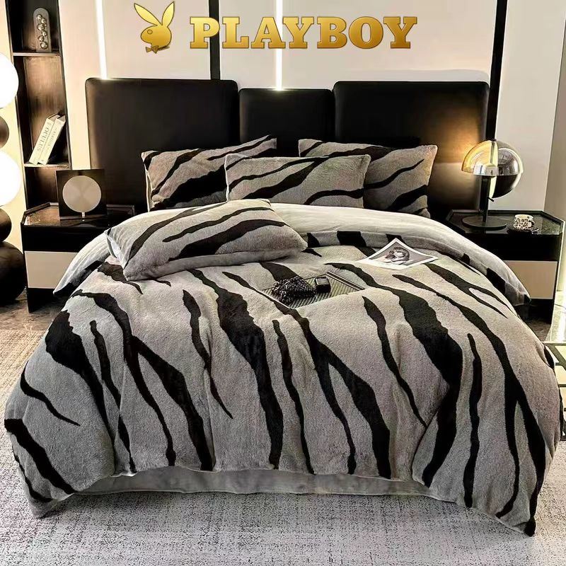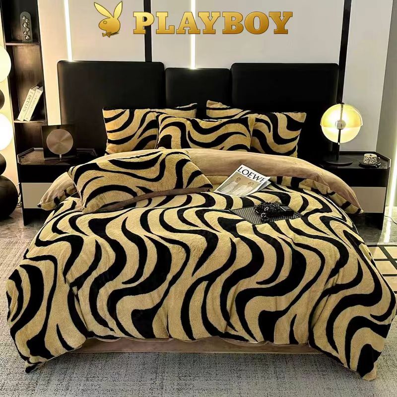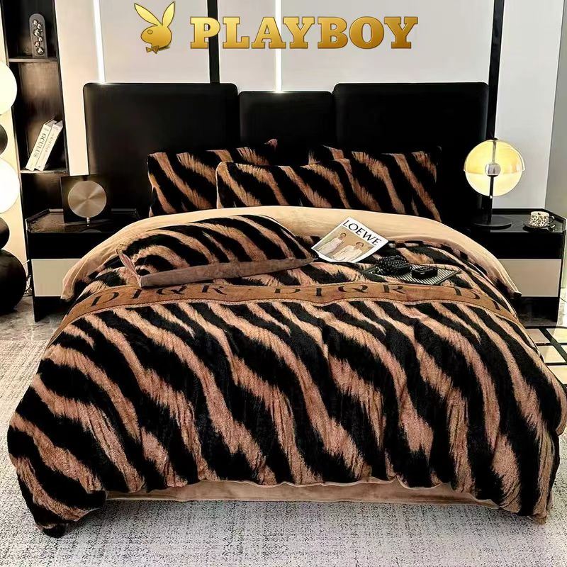 花花公子-家纺-豹纹美拉德兔绒加厚保暖秋冬四件套