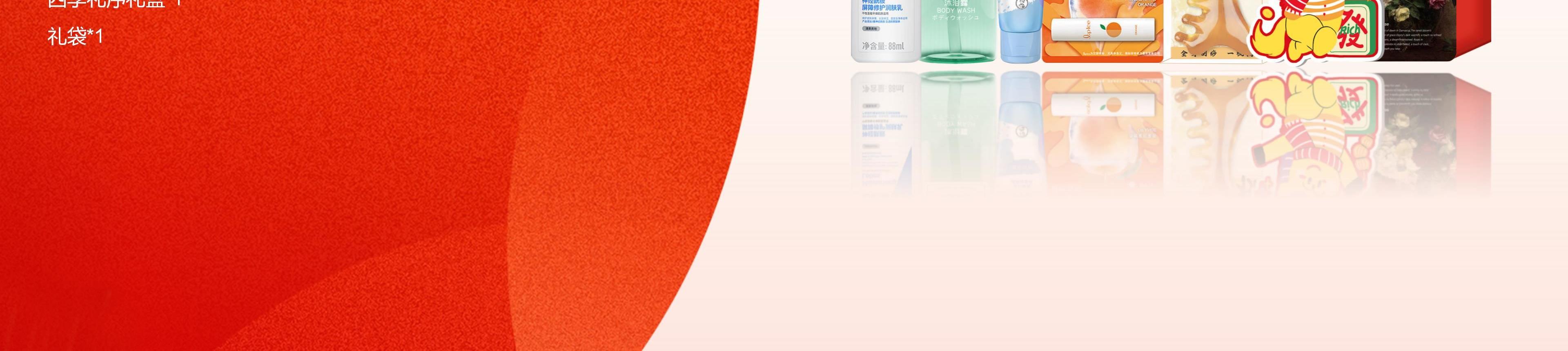 配置明细: 花王(KAO)沐浴露300g*1 适乐肤神经酰胺屏障修护润肤乳88ml*1 曼秀雷敦倍护嫩滑护手霜50g*1 曼秀雷敦什果冰润唇膏 3.5g*1 沃姆Womu经络按摩梳*1 「马上發」马年限定冰箱贴*1块(赠品) 蔬果园香挂*1(赠品) 四季礼序礼盒*1 礼袋*1