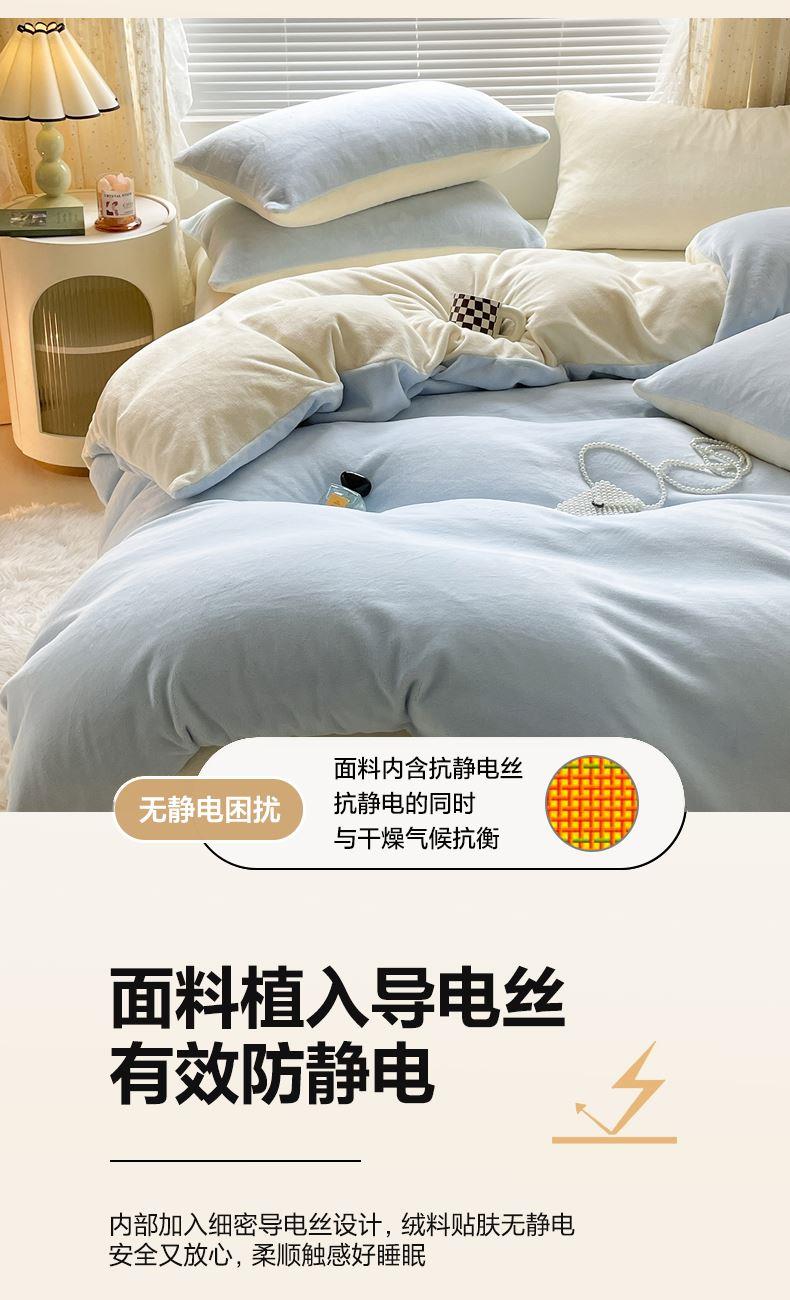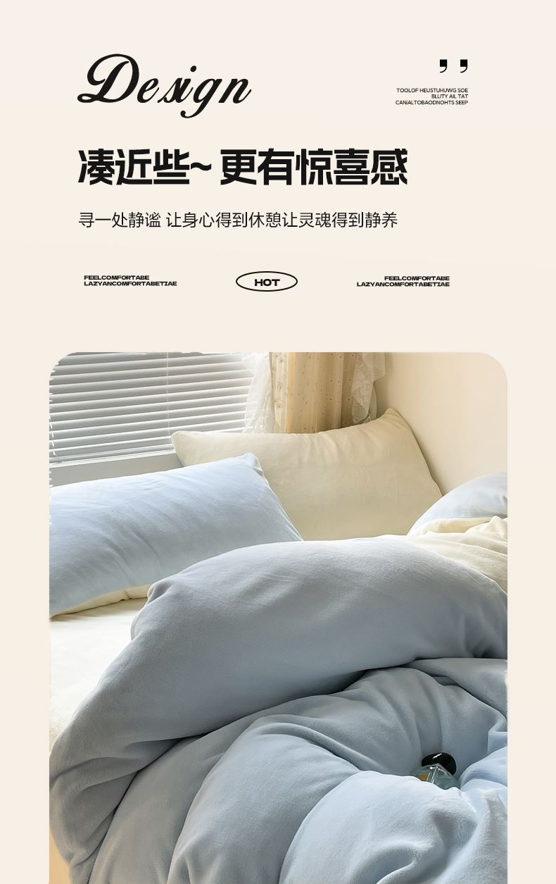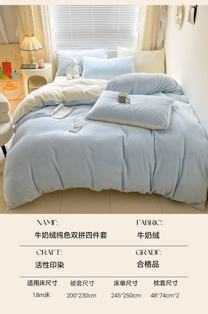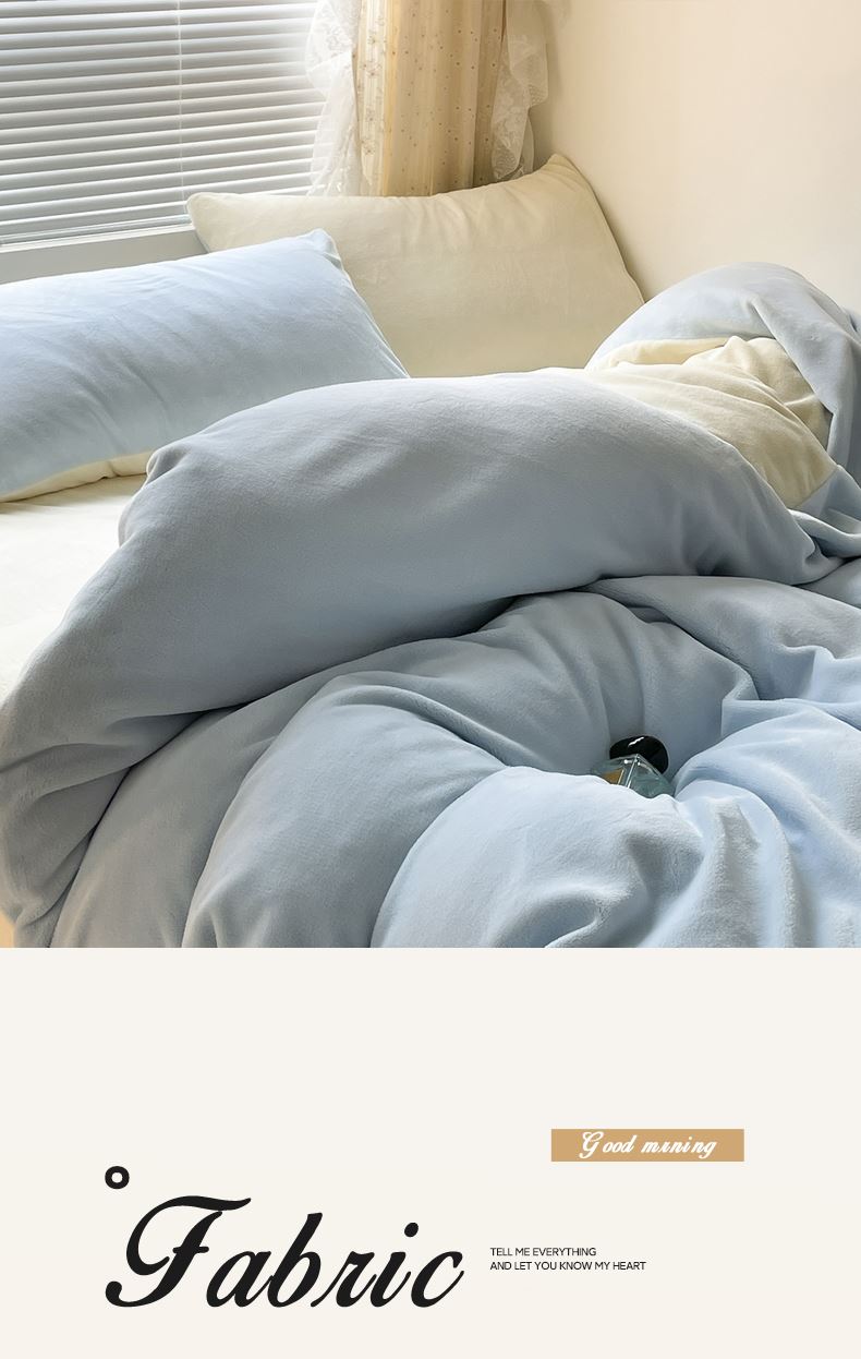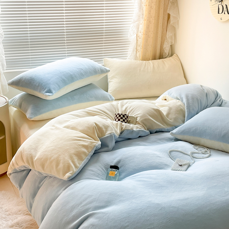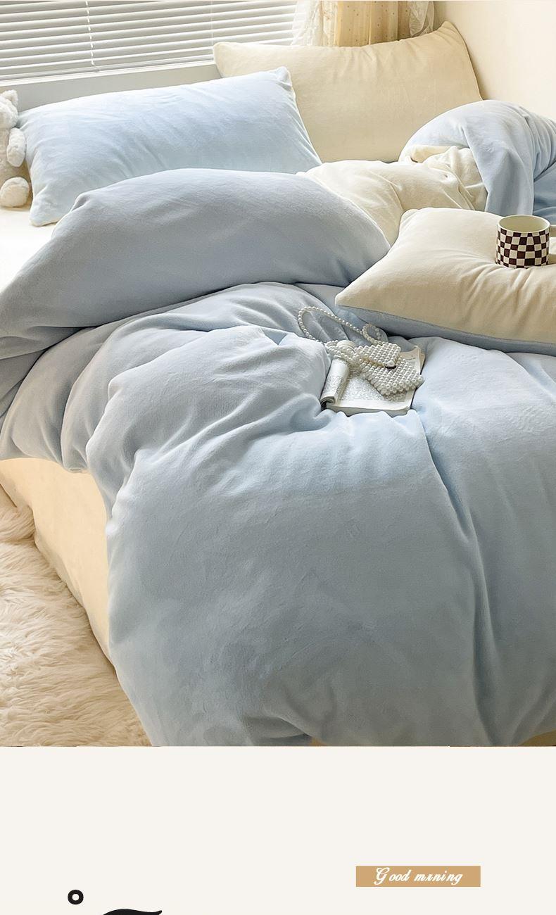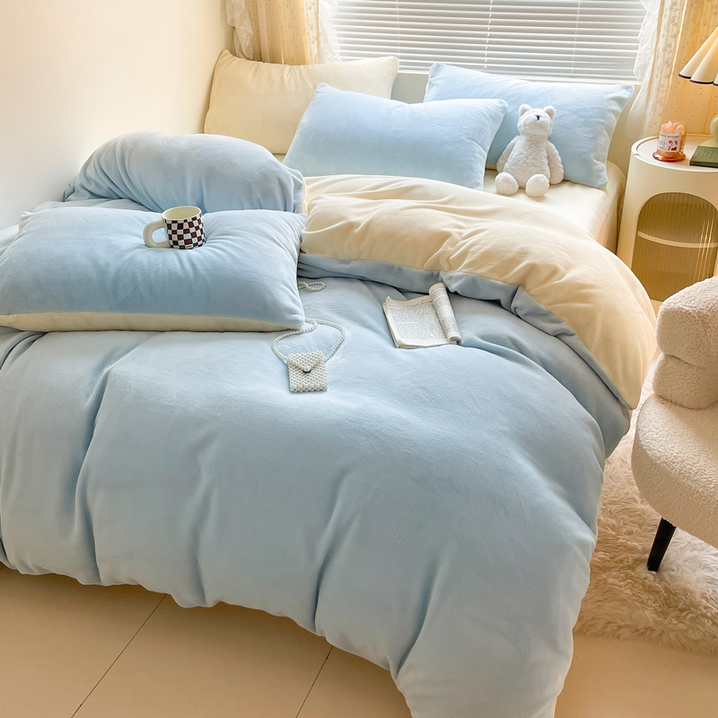百丽安娜纯色牛奶绒四件套-浅蓝+奶黄