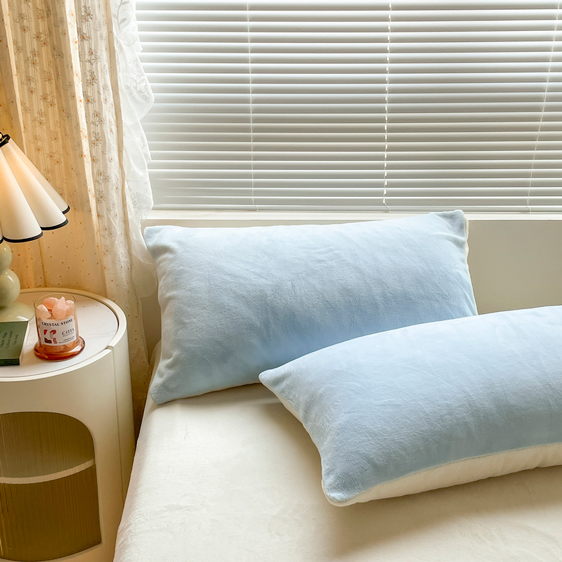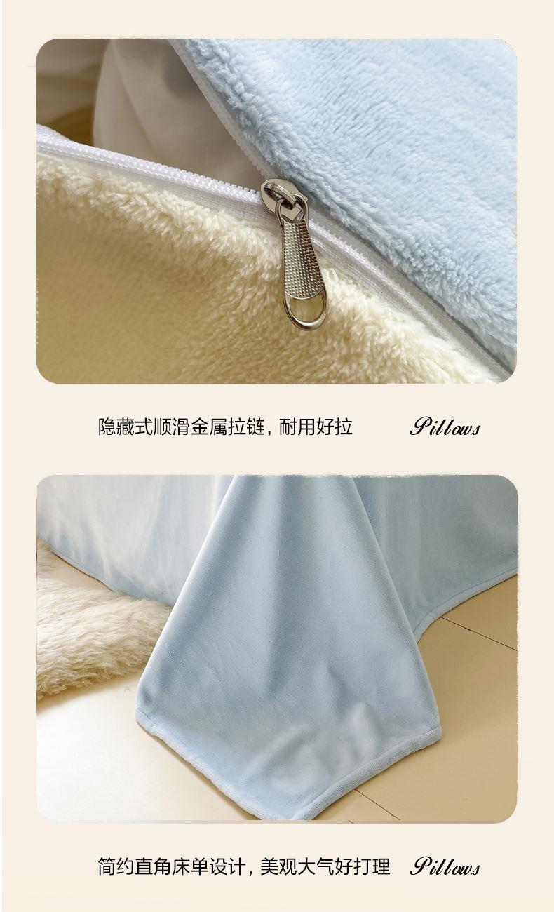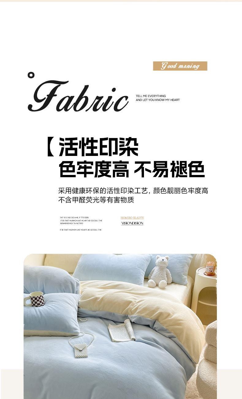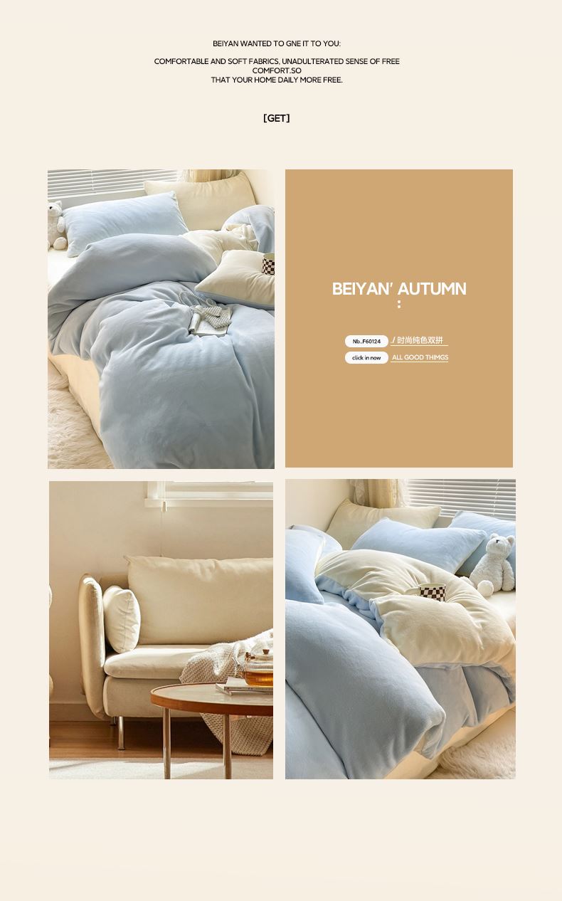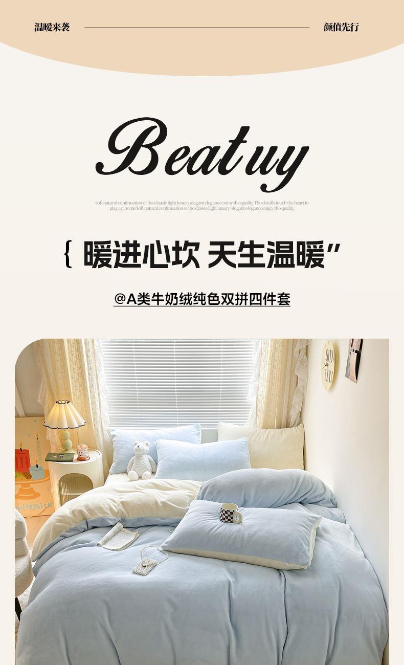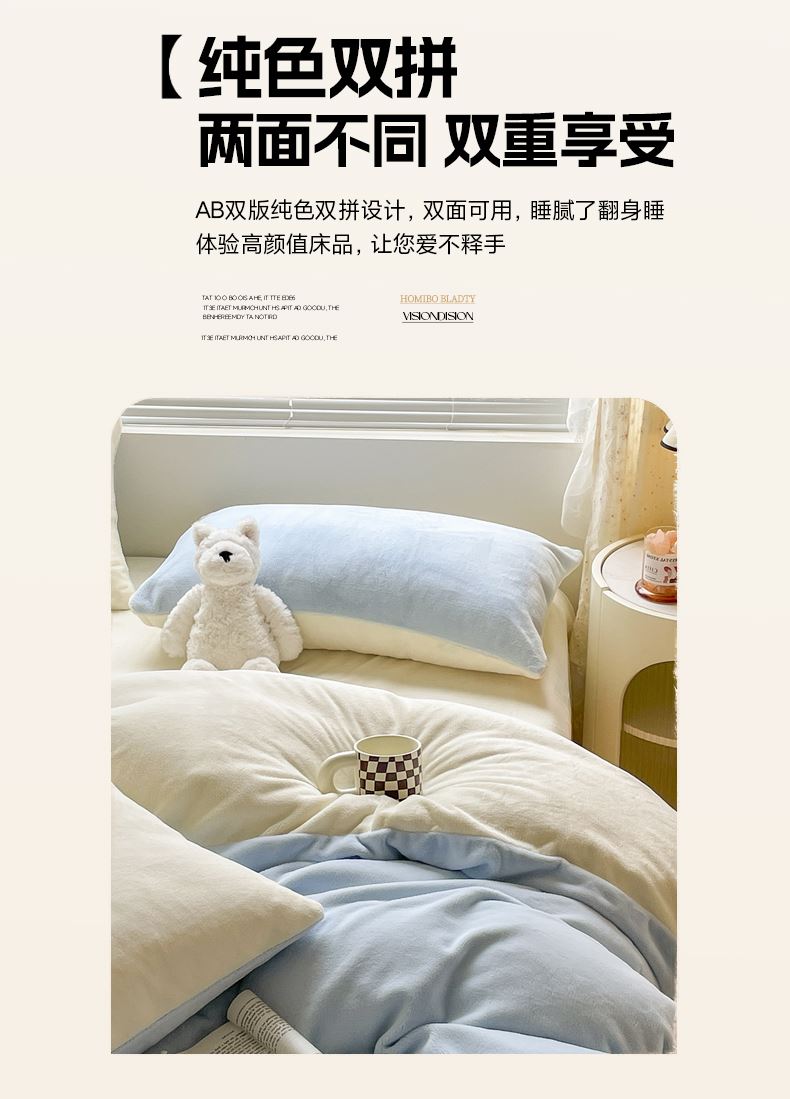百丽安娜纯色牛奶绒四件套-浅蓝+奶黄