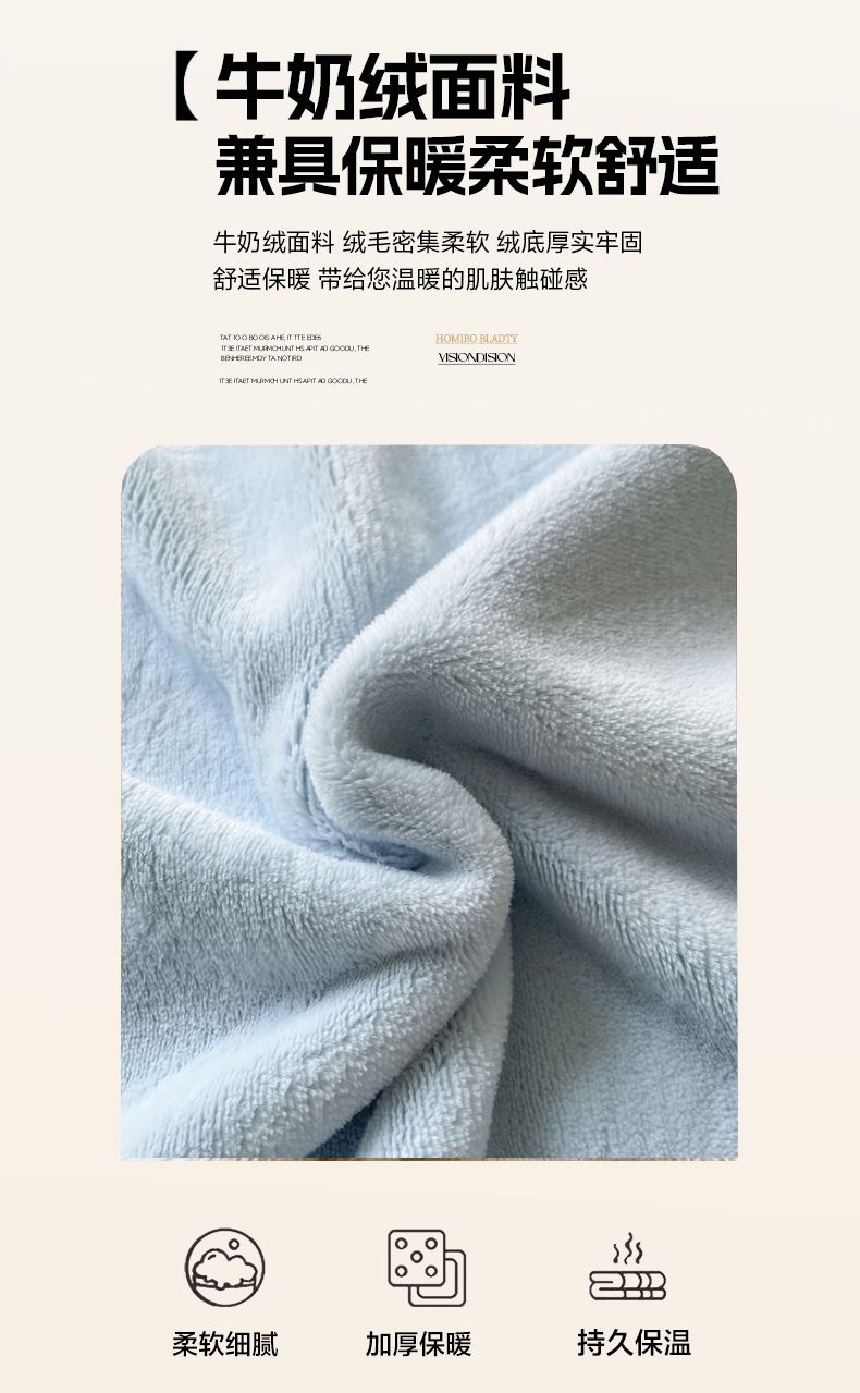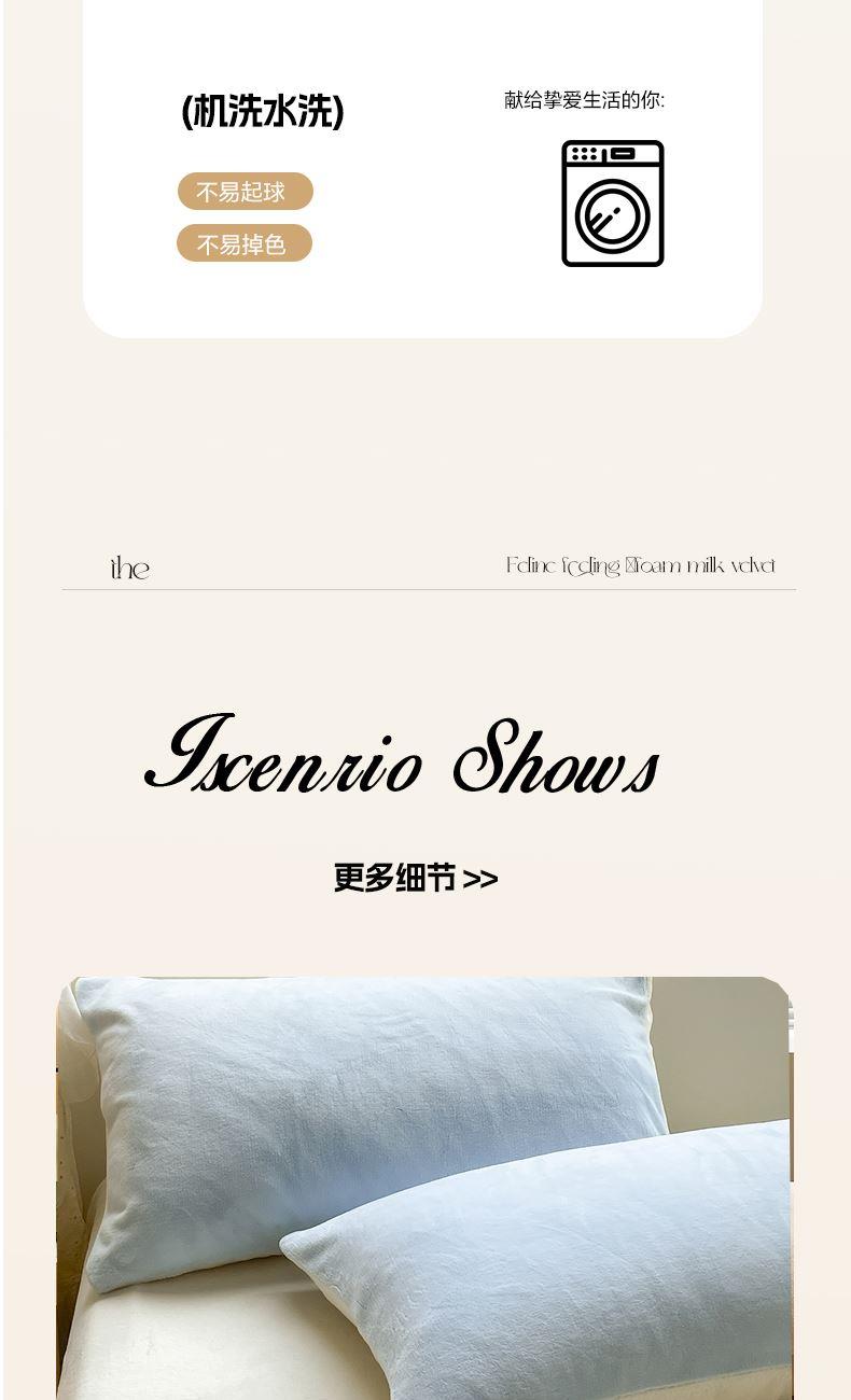 被套:200×230cm 床单:245×250cm 枕套:48×74cm 适用:1.5M-1.8M床 面料:牛奶绒(抗静电) 风格 : 轻奢风格 高克重牛奶绒细密紧实、柔软细腻、加厚保暖、锁温蓄热能力好,告别冬日冷被窝,可以暖呼呼睡个好觉,独享属于你的私人空间。
