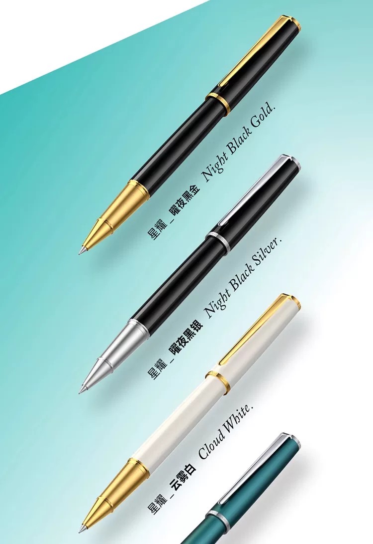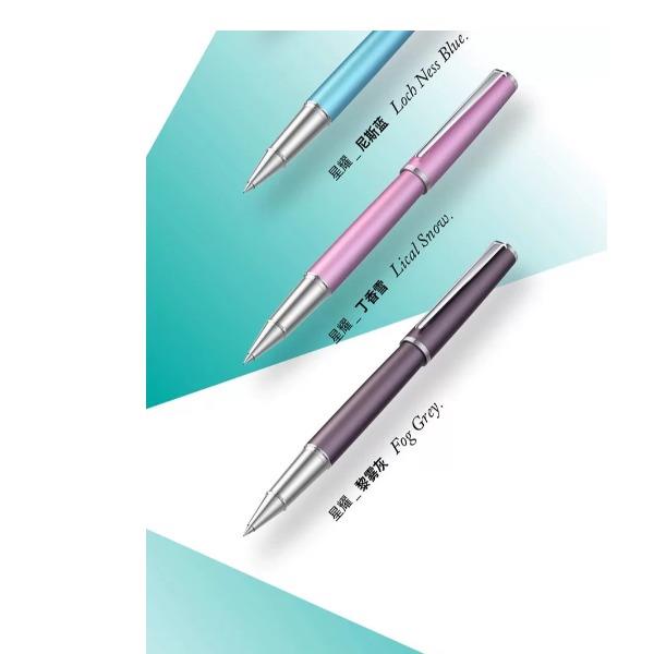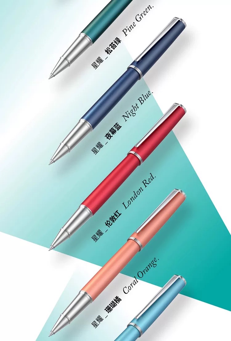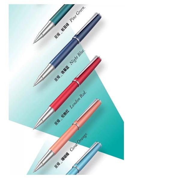 型号:星耀系列签字笔 类型:可替换芯宝珠笔 重量:墨水/宝珠笔25g/30g 颜色分类:曜夜黑金/曜夜黑银/黎雾灰/松苔绿/夜幕蓝/伦敦红/珊瑚橙/云雾白尼斯蓝/丁香雪 书写粗细:0.6mm 整笔材质:铝铜 笔盖:卡扣嵌套设计 笔握:24mm中距笔握 套餐类型:官方标配 包装方式:鸿运笔记本礼盒装 适用场景:送礼书写 适用人群:文艺青年 笔杆材质:金属笔身纹理:磨砂