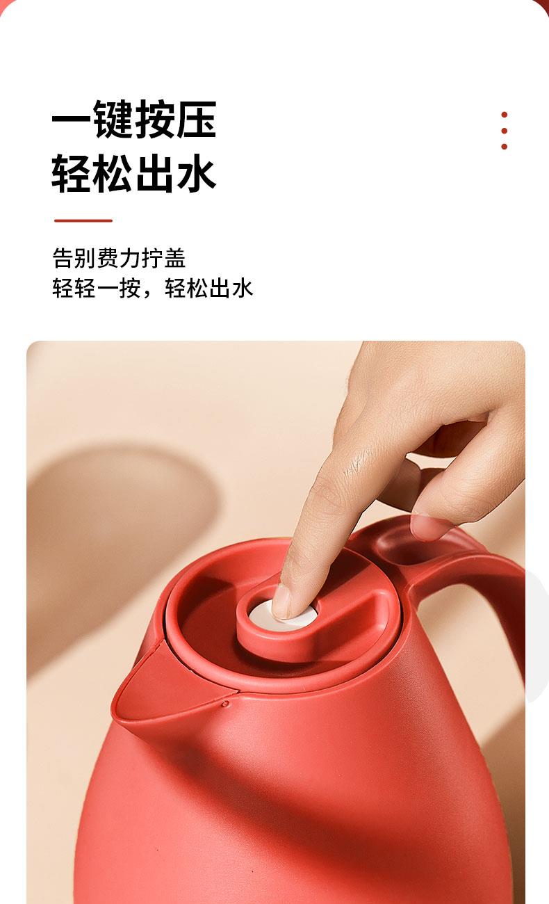 材 质:食品级PP、玻璃内胆 产品参数:1000ml、230ml 彩盒尺寸:369*151*254mm 外箱尺寸:62.4*38.3*52.6cm 1.智能结构设计,倒水时壶嘴自动弹开,松手即闭,单手操作无负担,有效防尘、防虫、防回流,保持水质纯净,提升出水流速的稳定性,不滴不溅,手感干净利落 2.采用云朵般柔和流畅的自然曲线造型,握感舒适,指掌可自然贴合“光影缝隙”中,美观且防滑,轻松应对多次倒水、老人小孩皆宜。
