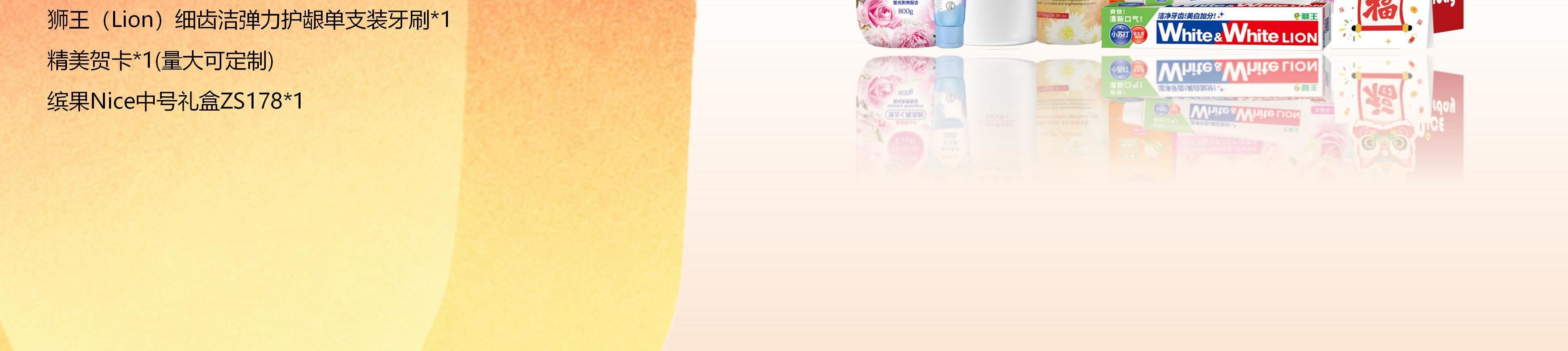 配置明细:(颜色香型随机) 资生堂芬浓润透美容液洗发水550ml*1 绿色溪谷橙花亮肤沐浴露700g*1 曼秀雷敦倍护嫩滑护手霜50g*1 UYAJOY亚乐玫瑰花香柔软洗衣液800g*1 UYAJOY亚乐花香洗衣凝珠8g*32颗*1 UYAJOY亚乐果蔬餐具洗洁精400ml*1 狮王(Lion)小苏打美白清新牙膏100g*1 狮王(Lion)细齿洁弹力护龈单支装牙刷*1 精美贺卡*1(量大可定制) 缤果Nice中号礼盒ZS178*1