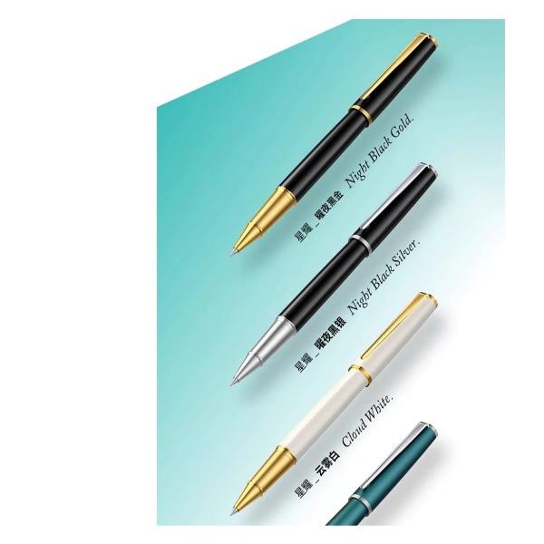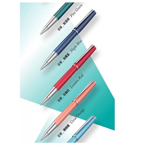 型号:星耀系列签字笔 类型:可替换芯宝珠笔 重量:墨水/宝珠笔25g/30g 颜色分类:曜夜黑金/曜夜黑银/黎雾灰/松苔绿/夜幕蓝/伦敦红/珊瑚橙/云雾白尼斯蓝/丁香雪 书写粗细:0.6mm 整笔材质:铝铜 笔盖:卡扣嵌套设计 笔握:24mm中距笔握 套餐类型:官方标配 包装方式:鸿运笔记本礼盒装 适用场景:送礼书写 适用人群:文艺青年 笔杆材质:金属笔身纹理:磨砂