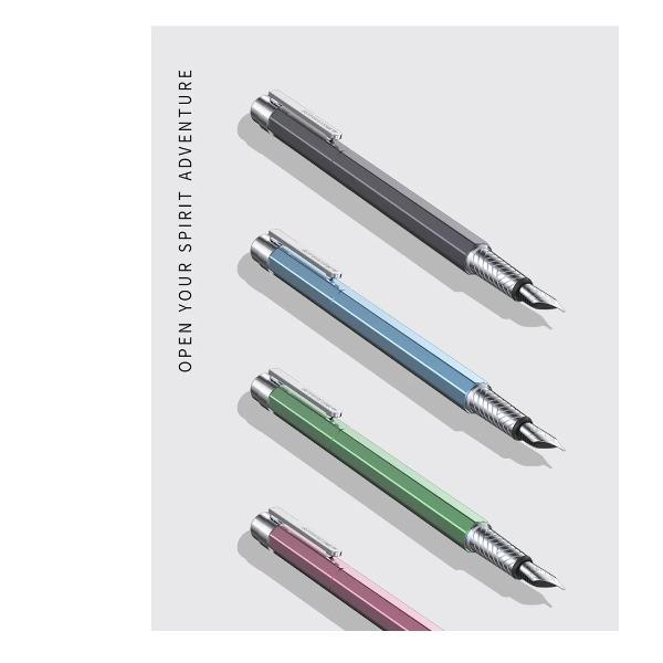 整笔材质:铝铜笔身:经典八角设计笔盖:卡扣嵌套设计笔握:24mm中距笔握
