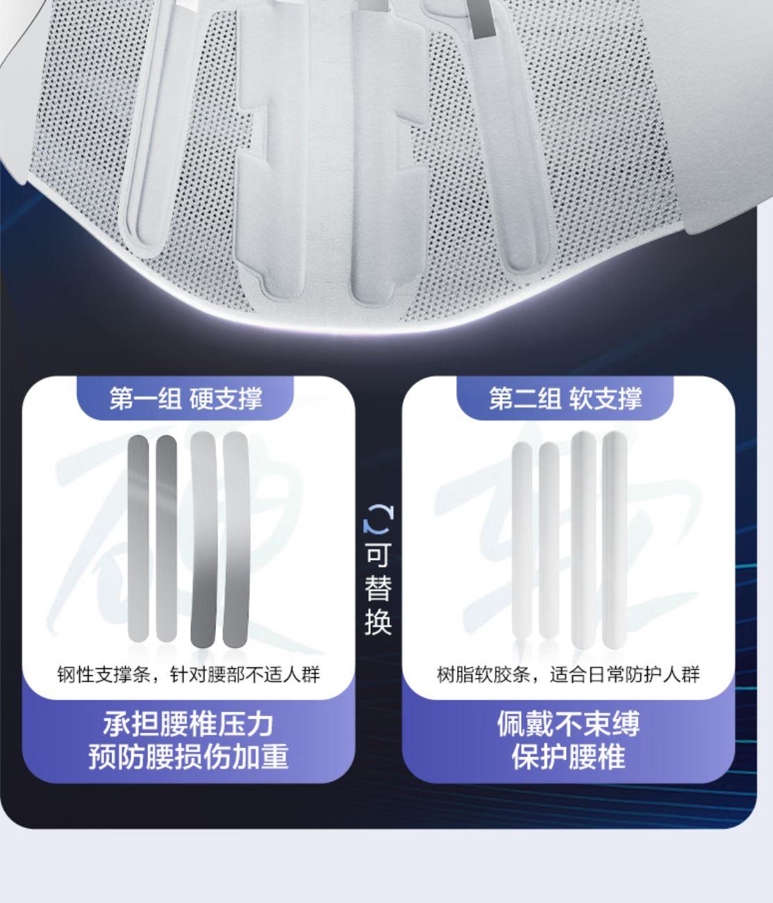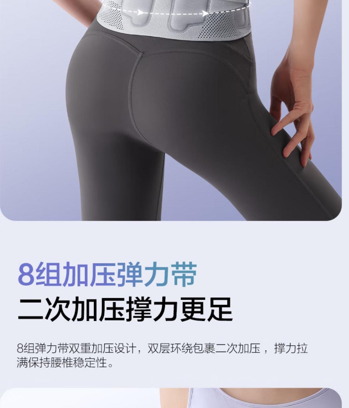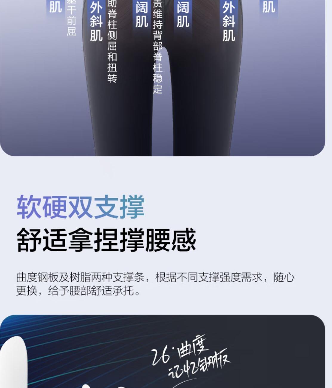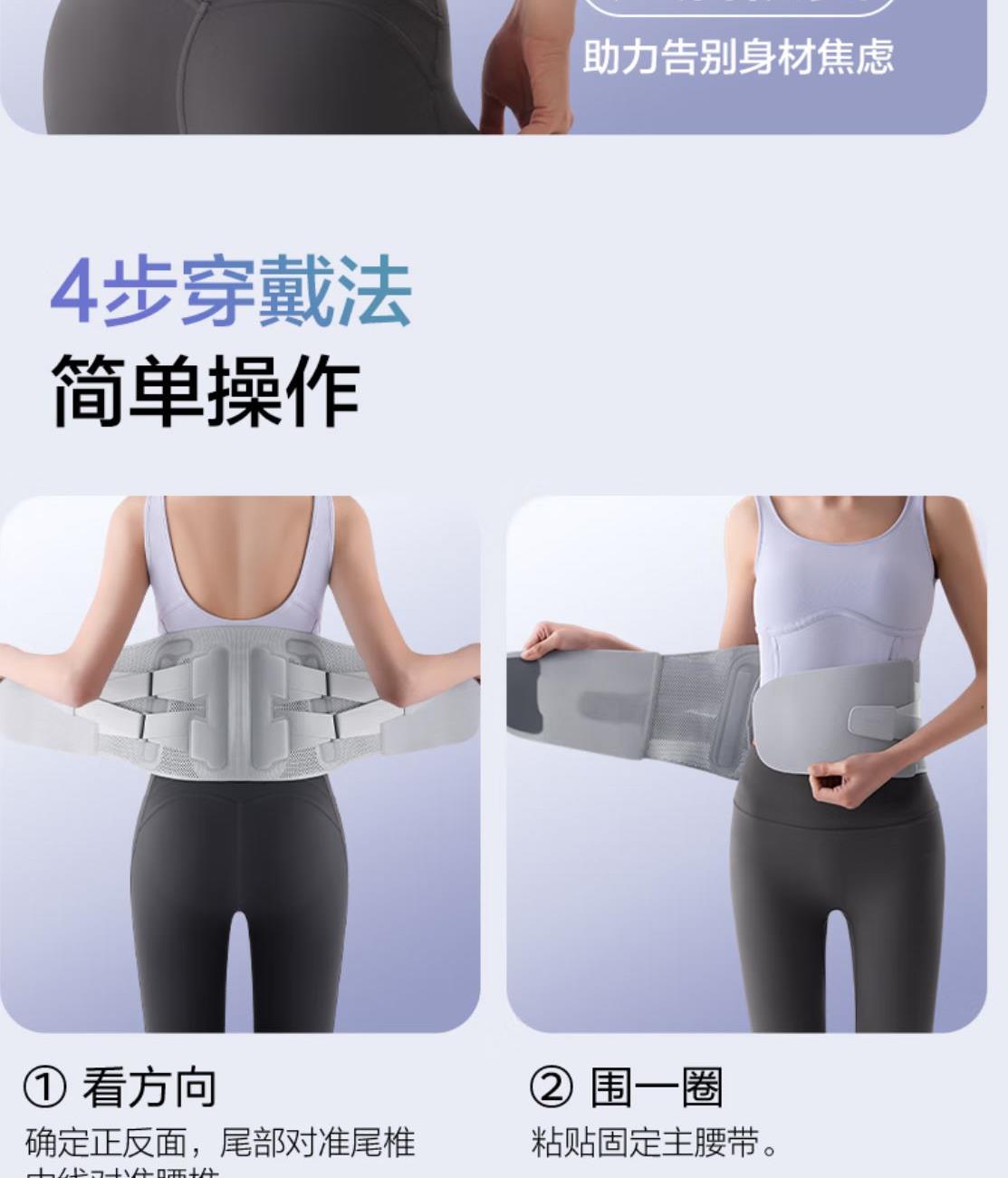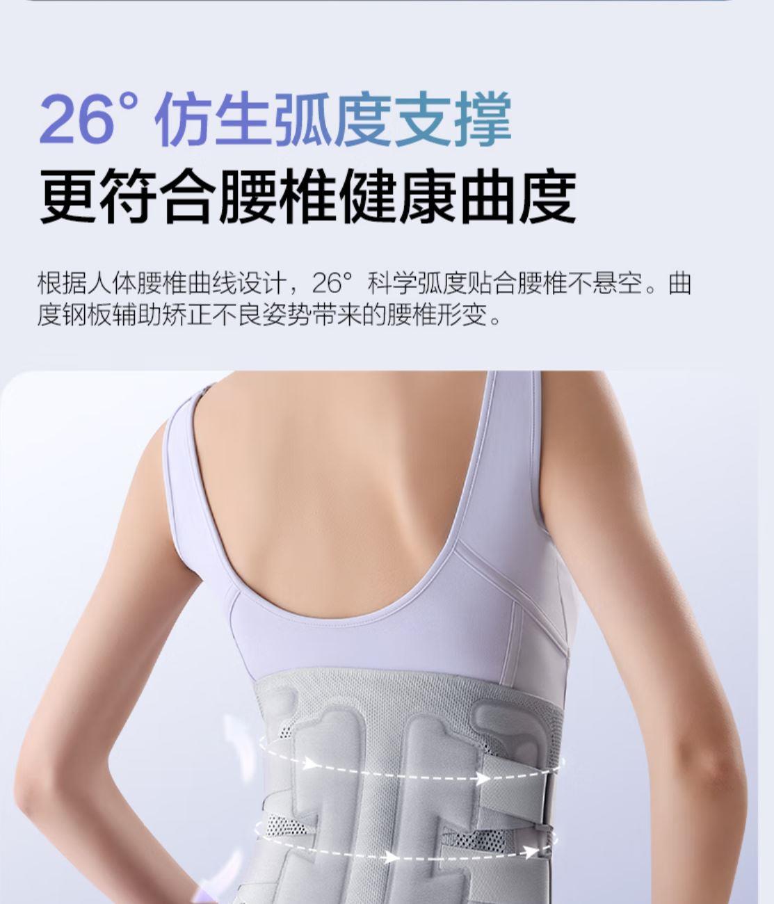 产品净重:0.64kg 产品尺寸:长235mm;宽1070mm;高10mm 包装清单:固定器*1+支撑板*4+垫片*2+说明书(含保修卡) 精细锁边工艺,不易卷边,经久耐用 8组加压弹力带,二次加压撑力更足 26度仿生弧度支持,更符合腰椎健康曲度
