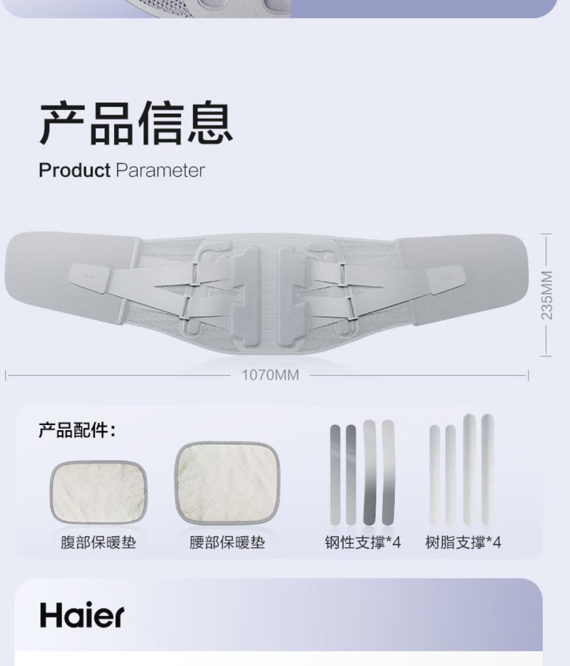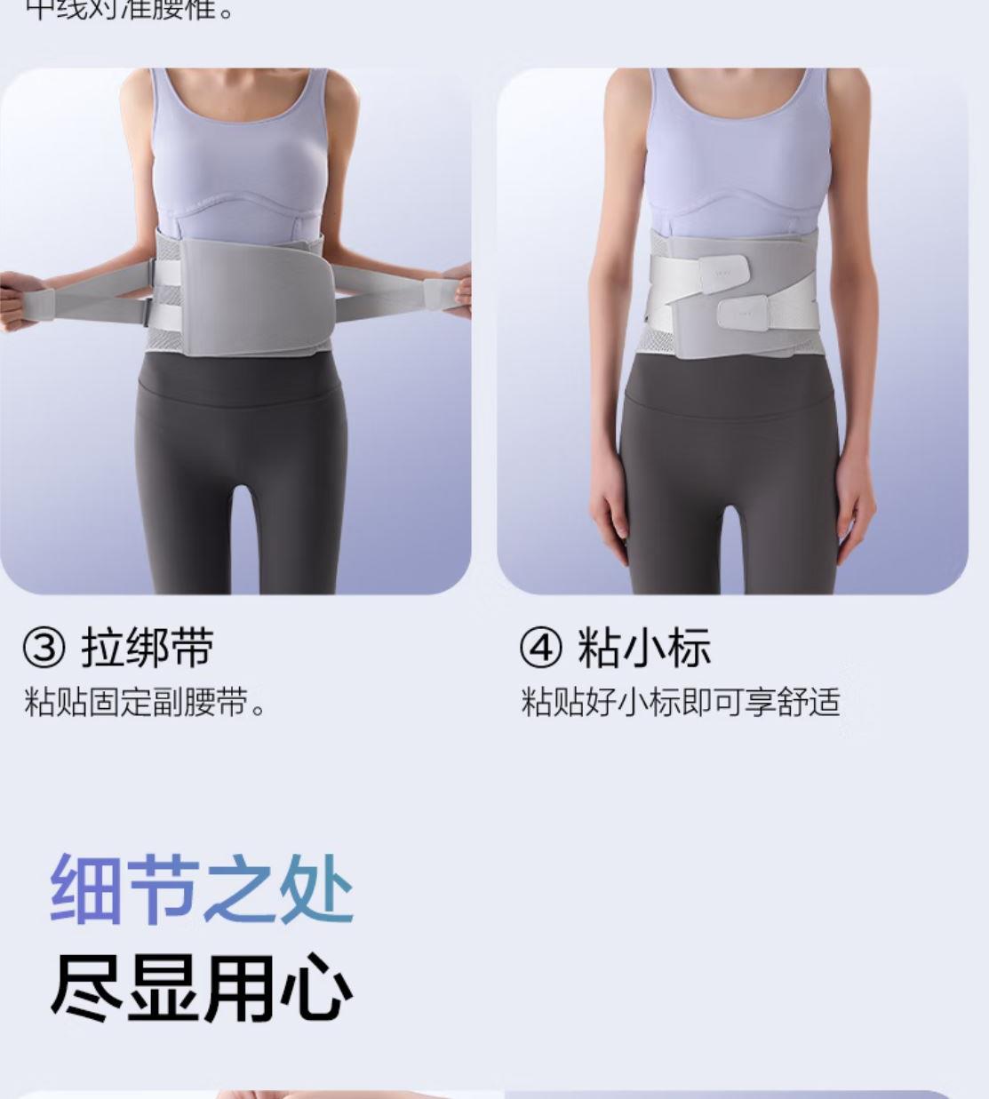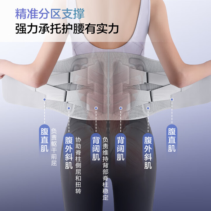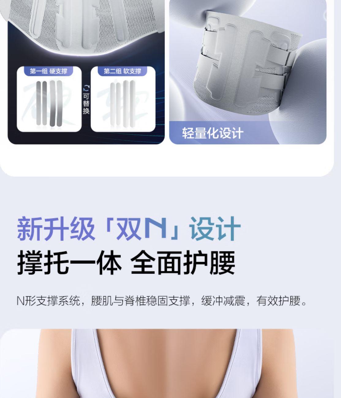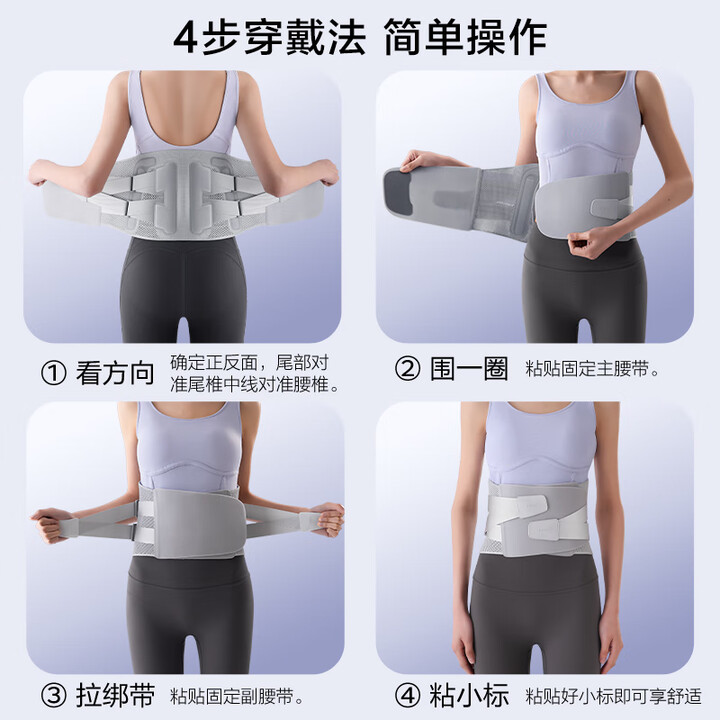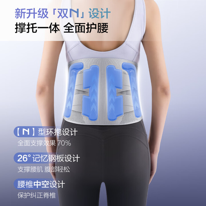 产品净重:0.64kg 产品尺寸:长235mm;宽1070mm;高10mm 包装清单:固定器*1+支撑板*4+垫片*2+说明书(含保修卡) 精细锁边工艺,不易卷边,经久耐用 8组加压弹力带,二次加压撑力更足 26度仿生弧度支持,更符合腰椎健康曲度