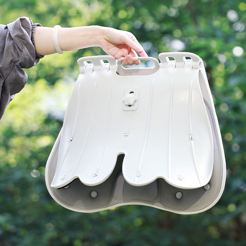 颜色:灰色 型号:LD-YD201 材质:PP合成树脂/布 适合体重:200斤以内 展开尺寸:410*370*400mm 1、人体工程学设计,分区支撑系统 ,腰部支撑位,可四档上下调节,支撑您的腰背,保持正确坐姿 2、可折叠设计 轻量便携出门 3、通风循环孔 柔软回弹记忆棉 可拆卸清洗 4、曲面撑腰塑形 久坐也舒适
