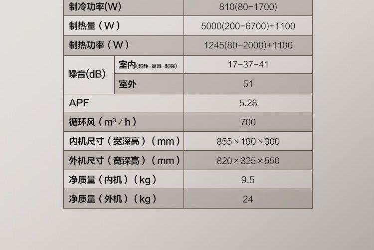 噪音:室内机噪音为 41/37/17dB (A),室外机噪音为 51dB (A)。