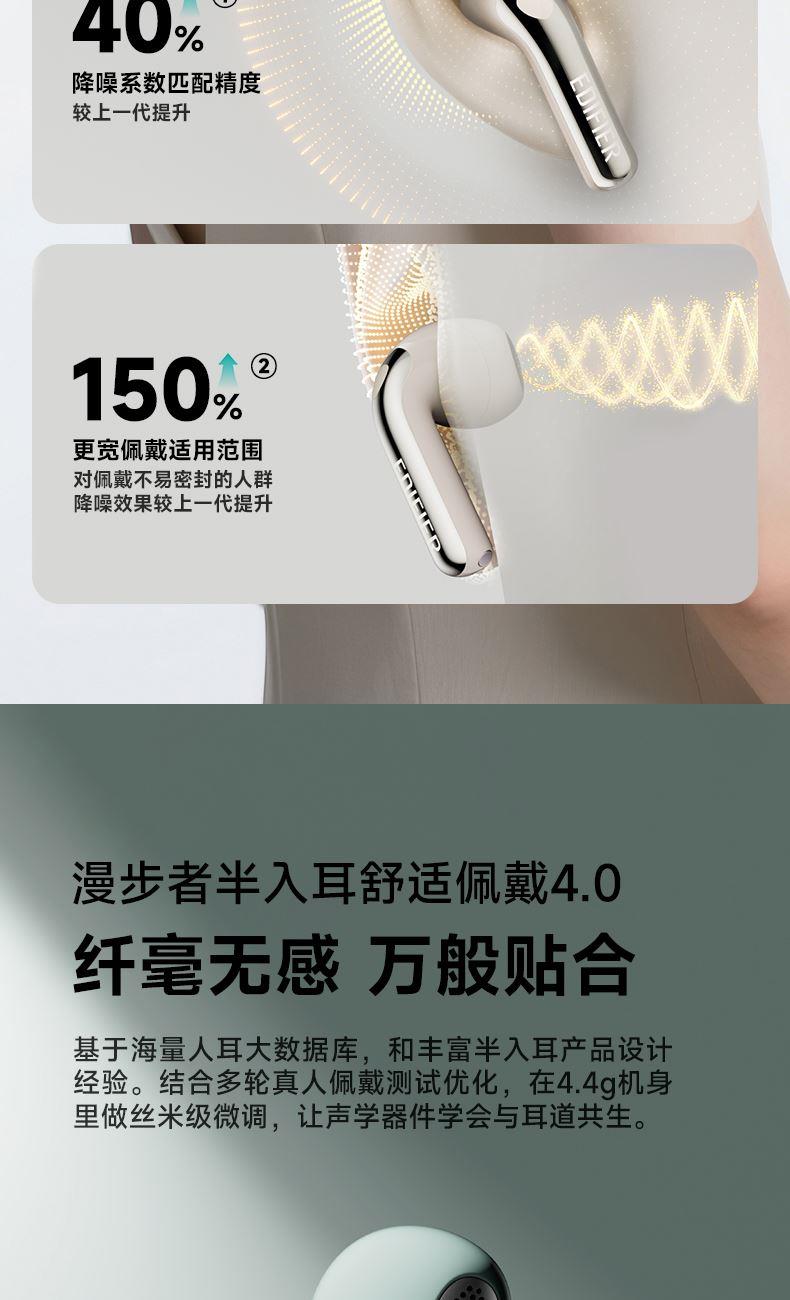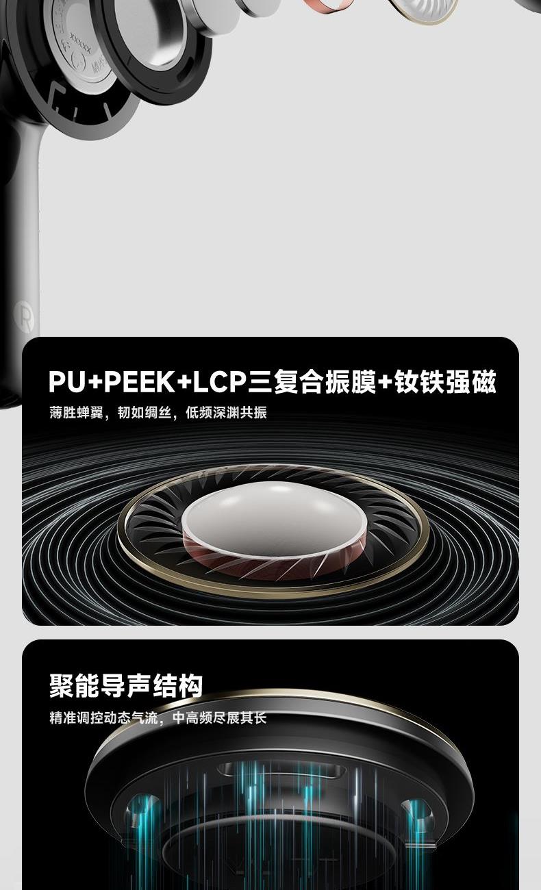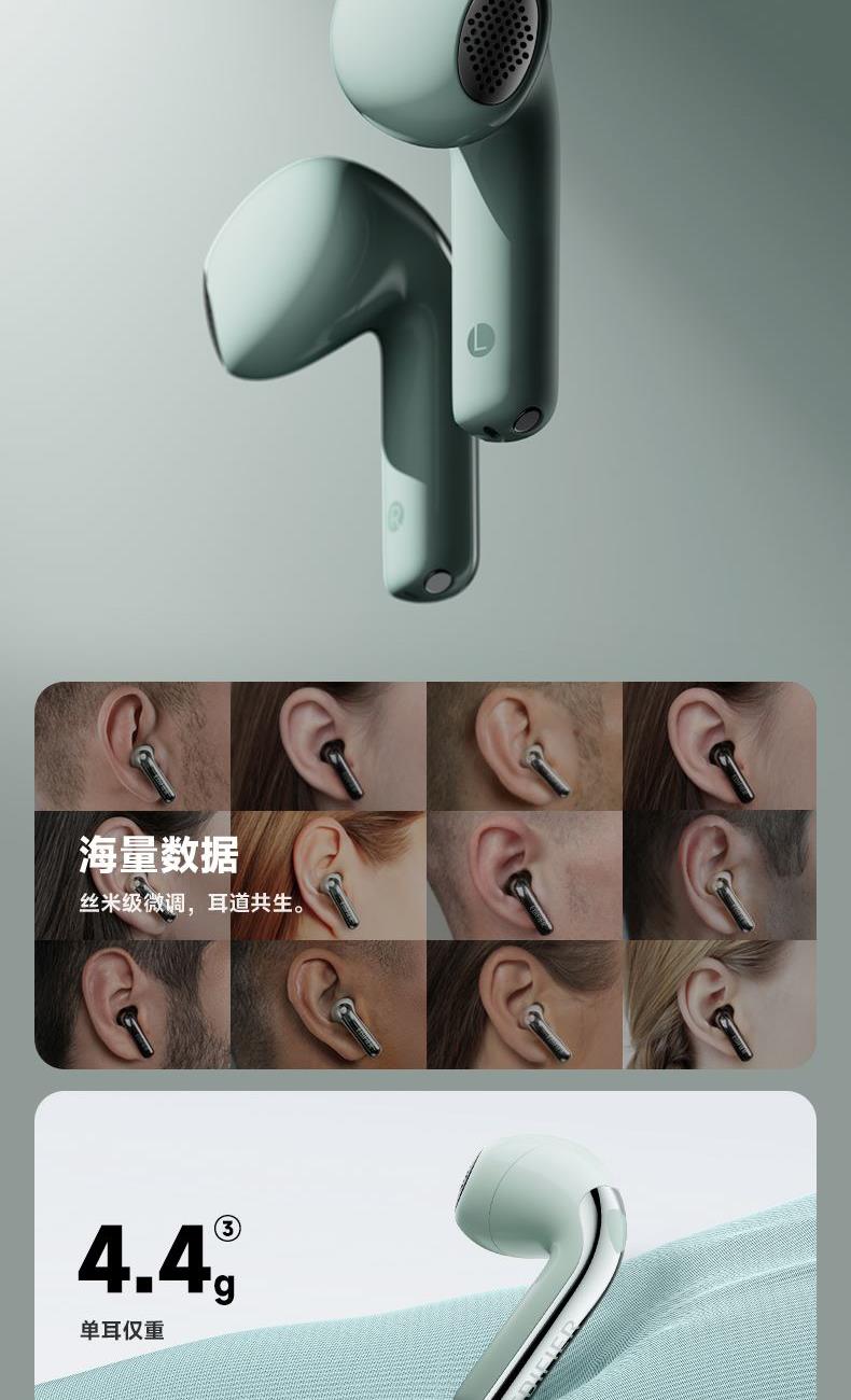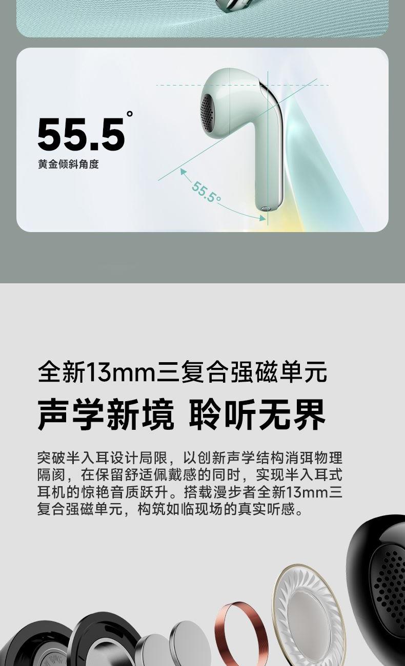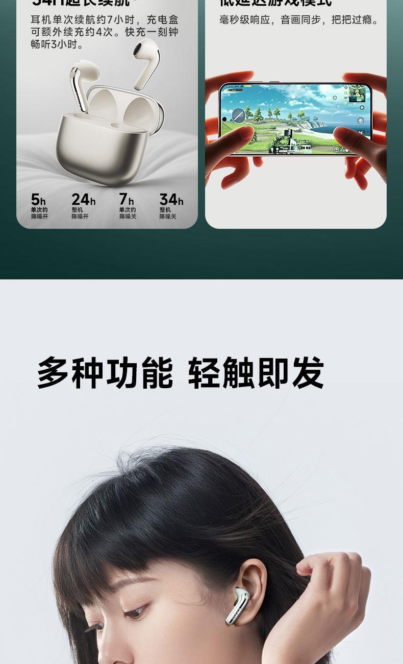 自适应主动降噪2.0,半入耳舒适佩戴4.0 自适应低频补偿算法 全新13mm三复合强磁单元 2+2Mic ENC通话降噪,经典[5原声]调音 支持双设备连接,APP同声传译