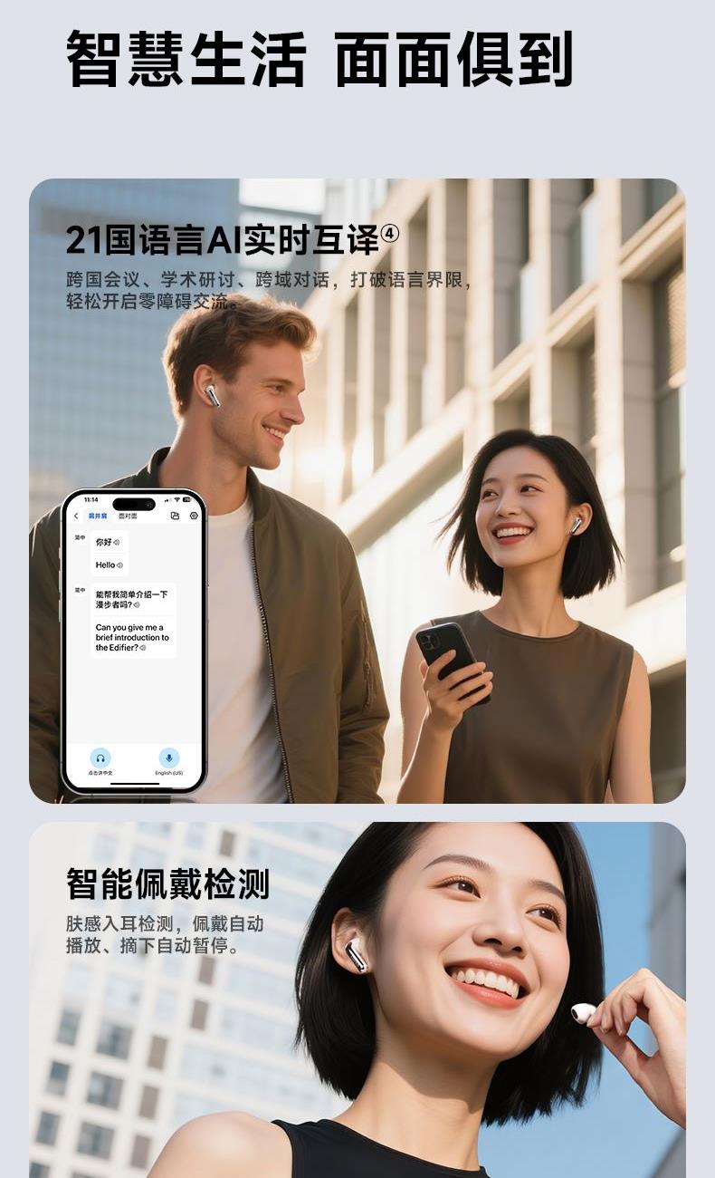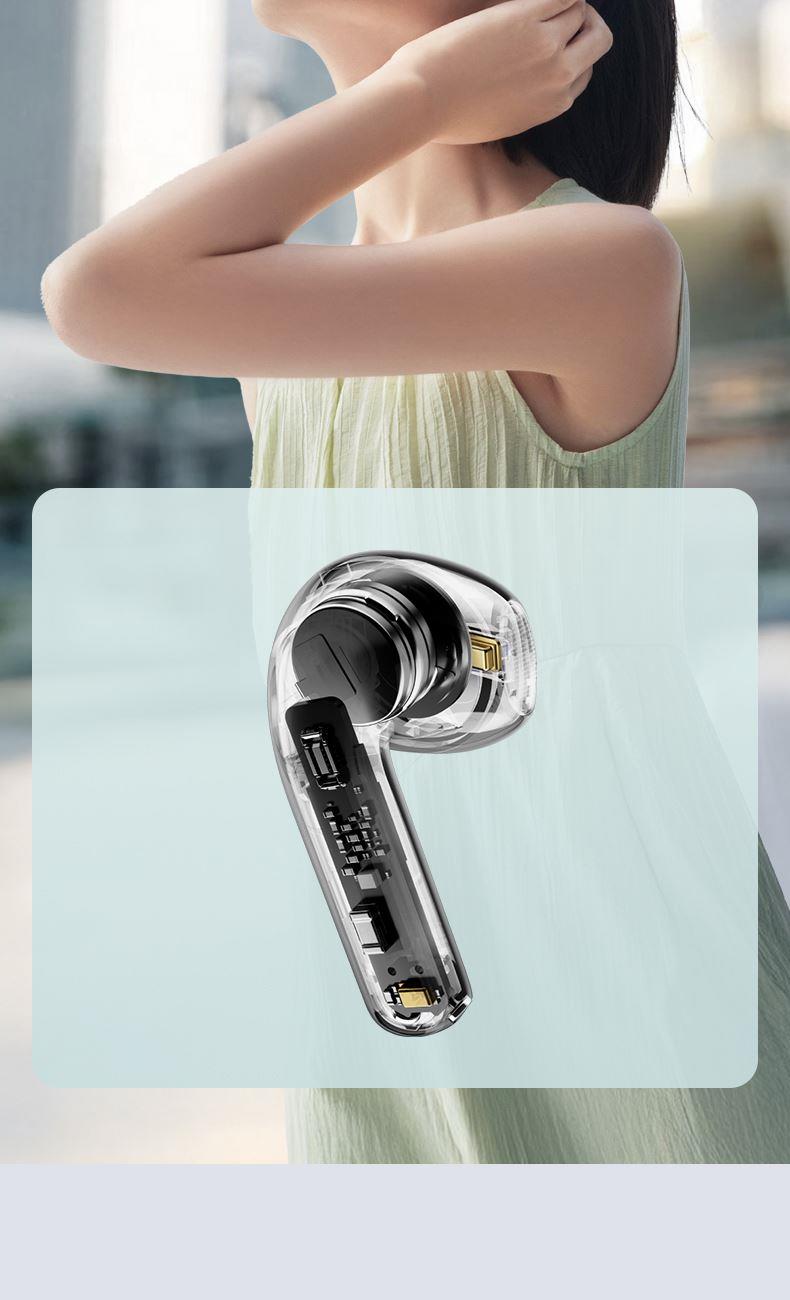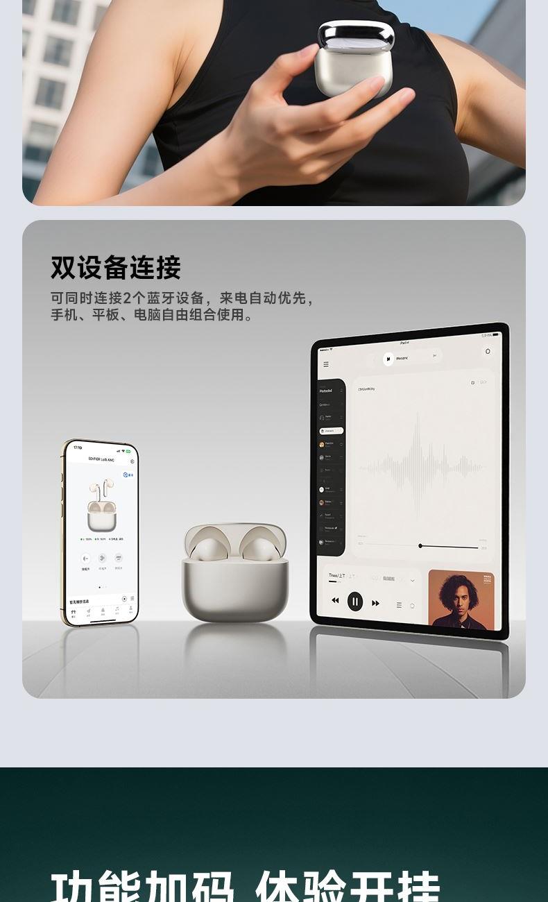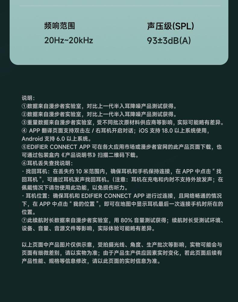 自适应主动降噪2.0,半入耳舒适佩戴4.0 自适应低频补偿算法 全新13mm三复合强磁单元 2+2Mic ENC通话降噪,经典[5原声]调音 支持双设备连接,APP同声传译