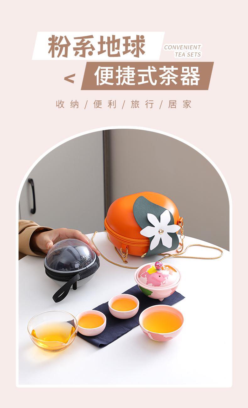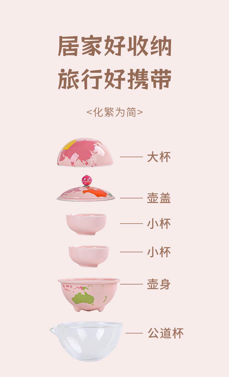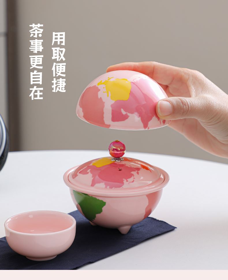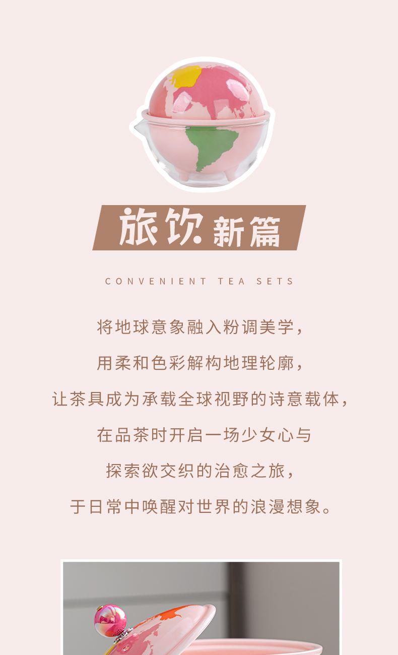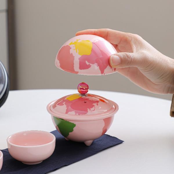 瓷语花香粉色系轻奢地球快客旅行茶具
