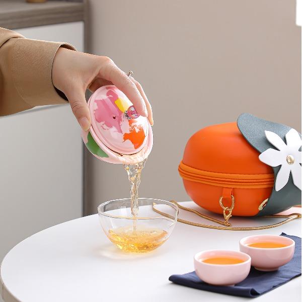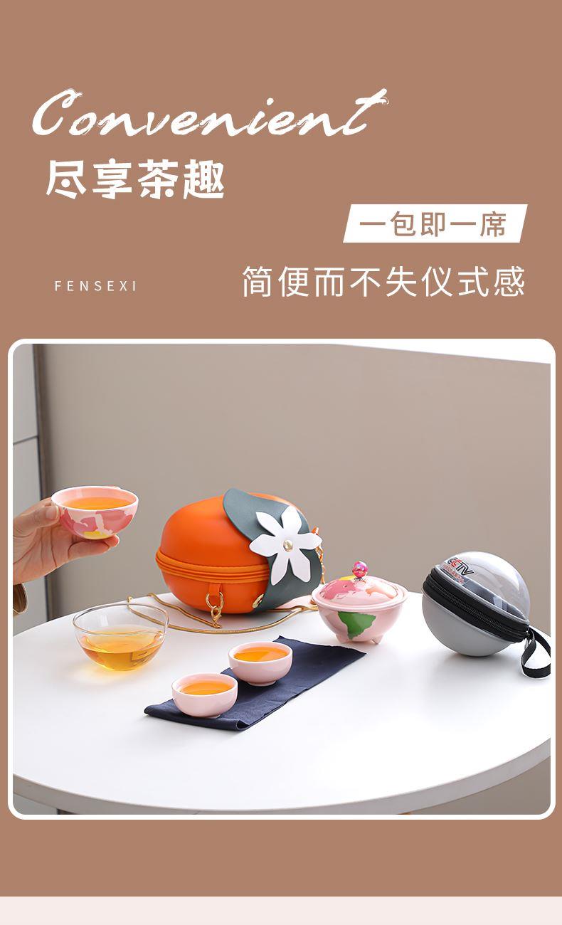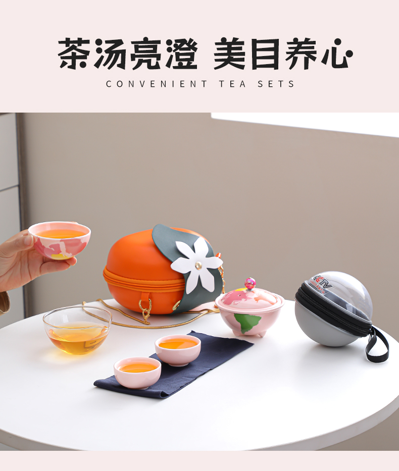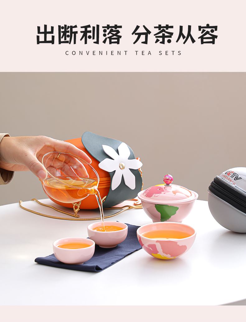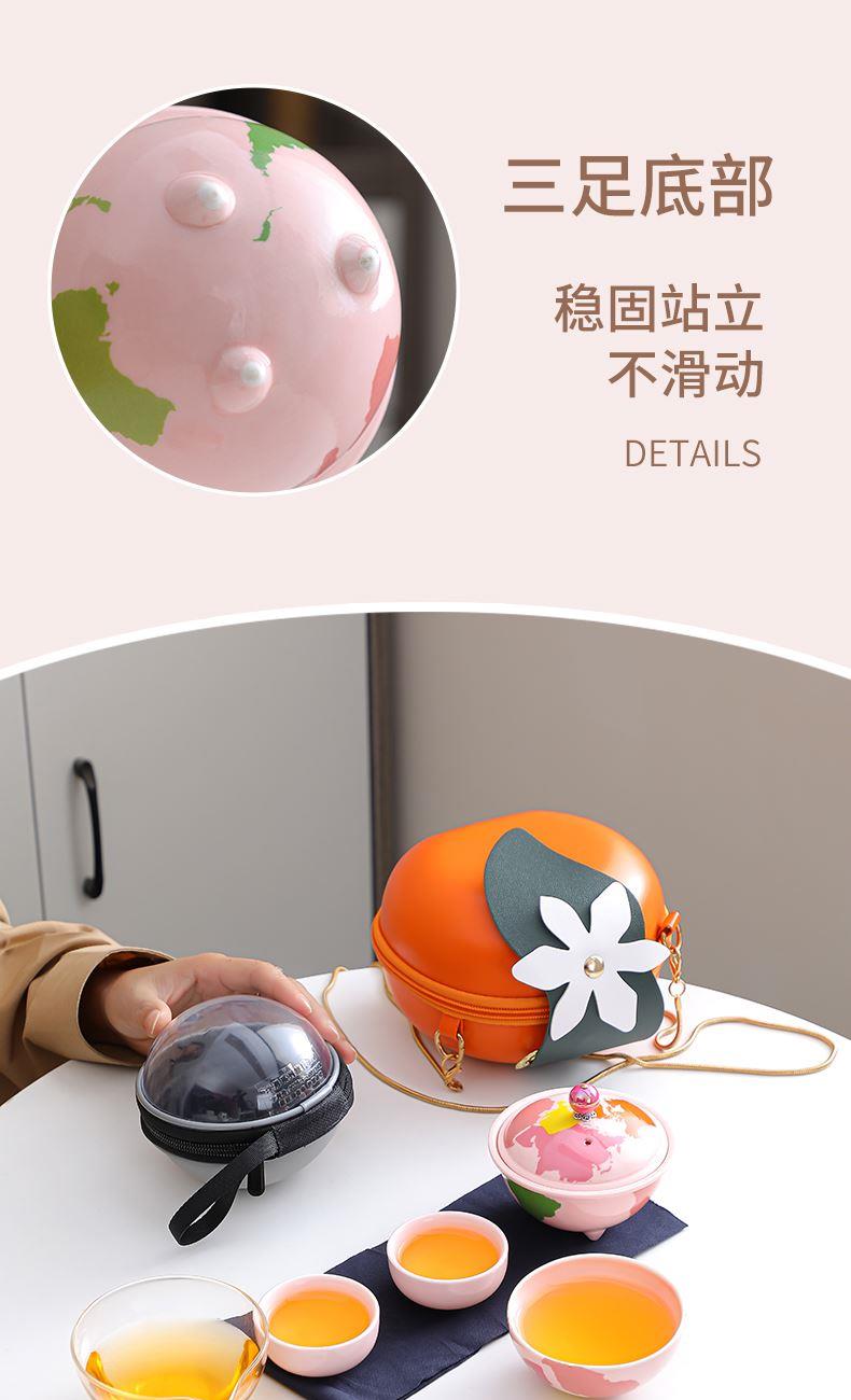 瓷语花香粉色系轻奢地球快客旅行茶具