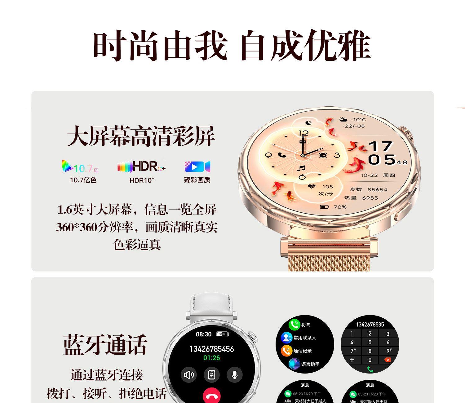LIGE利格女性健康检测运动通话智能手表BWEX200