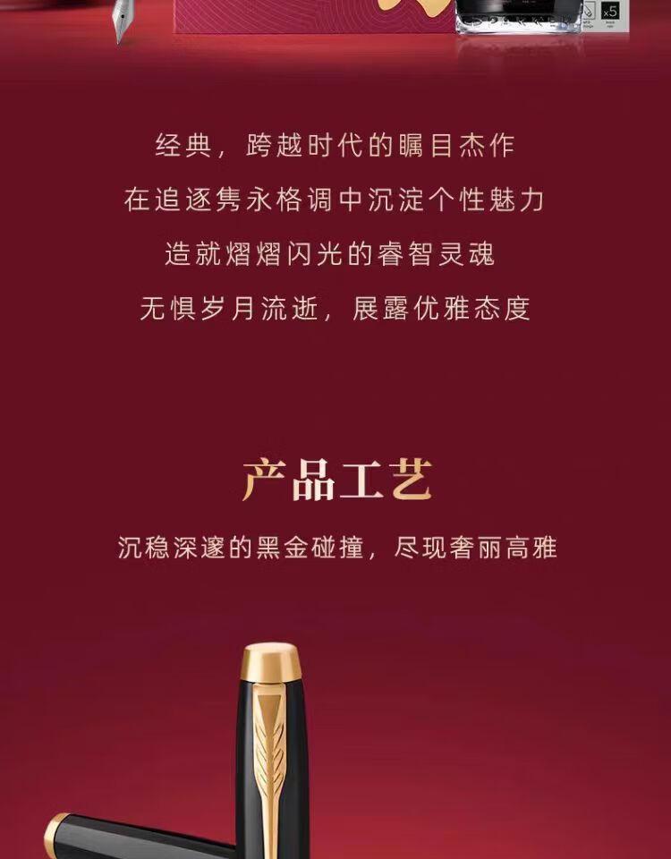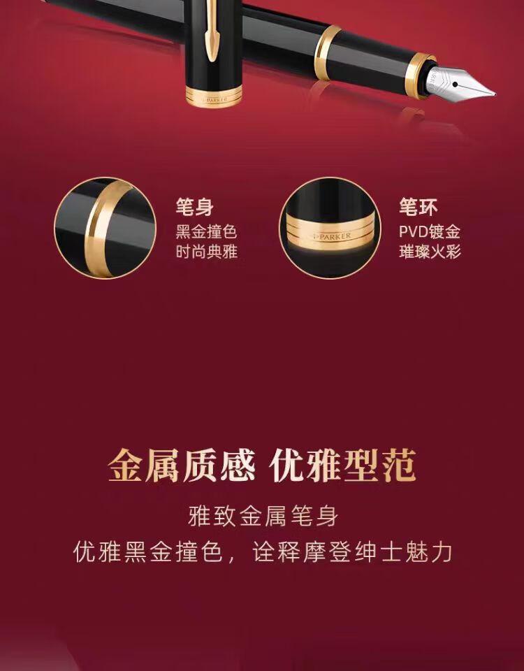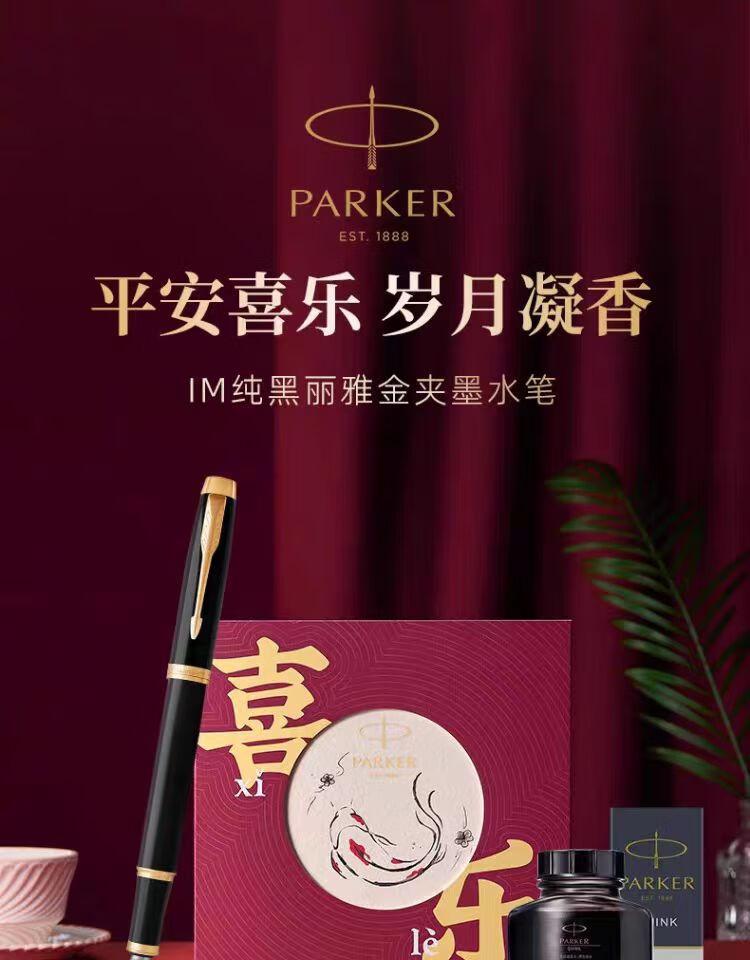 派克新款IM纯黑丽雅金夹墨水笔+喜乐礼盒