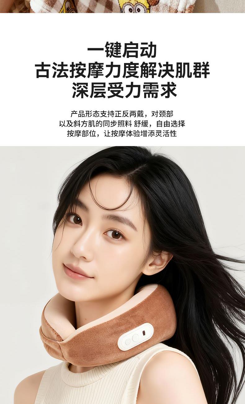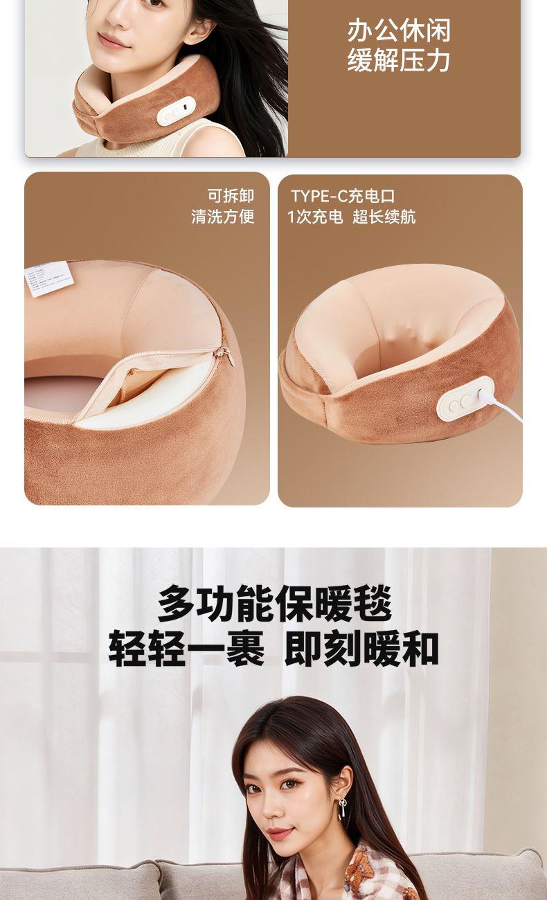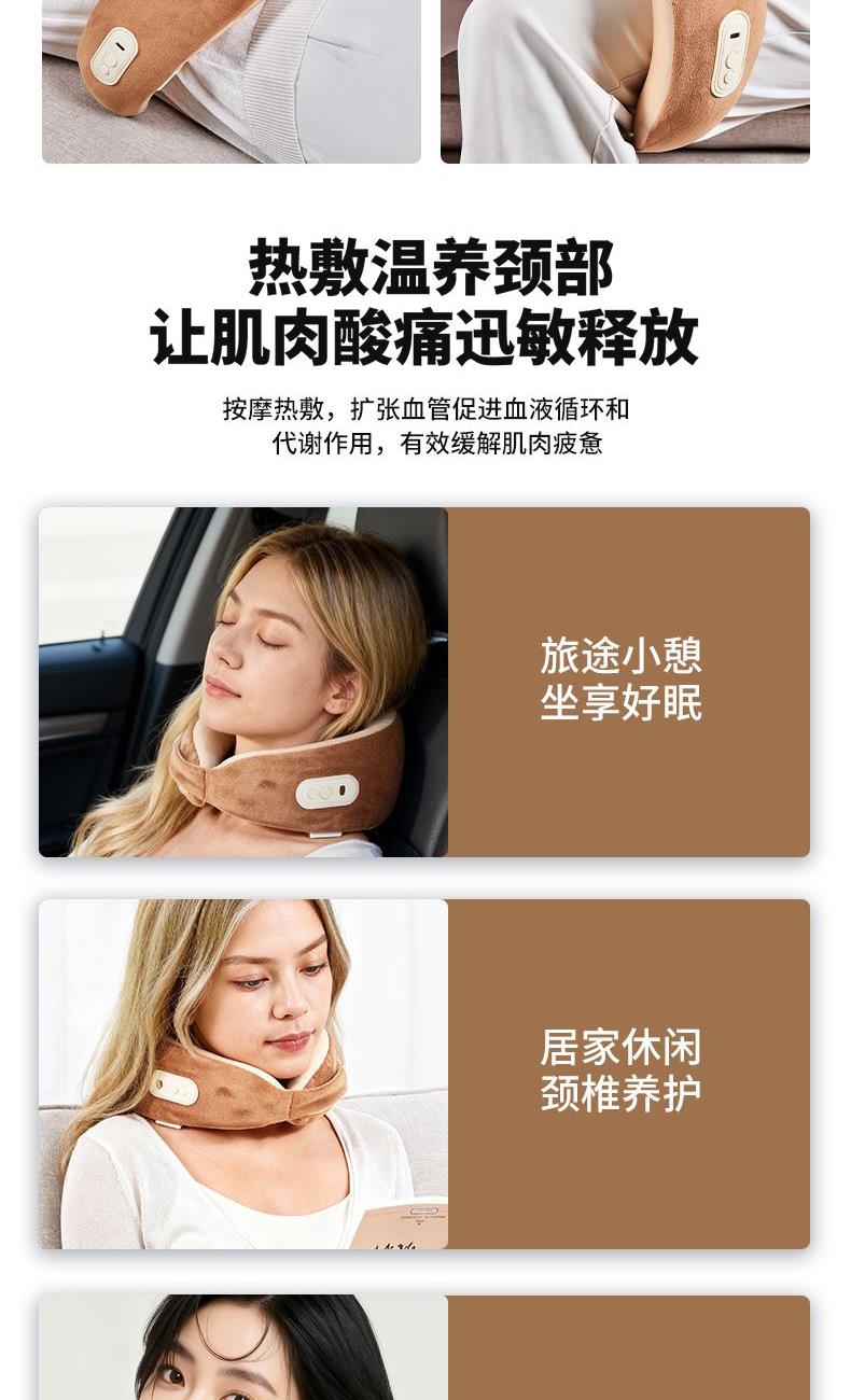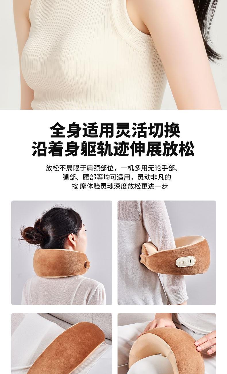 1、按摩枕采用温和的按摩手法,温暖颈部,缓解肌肉僵硬;