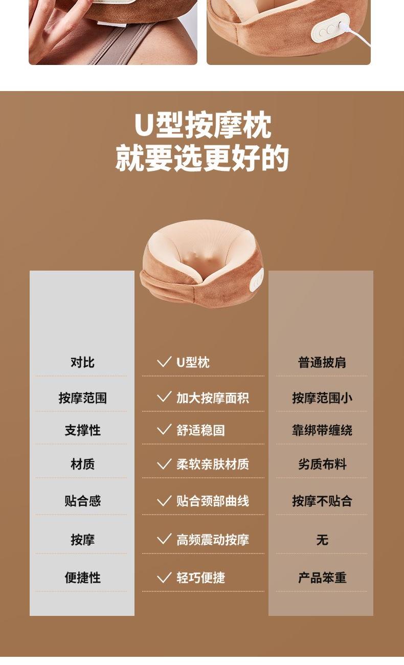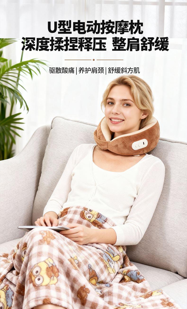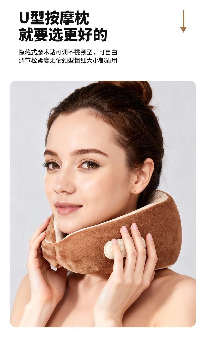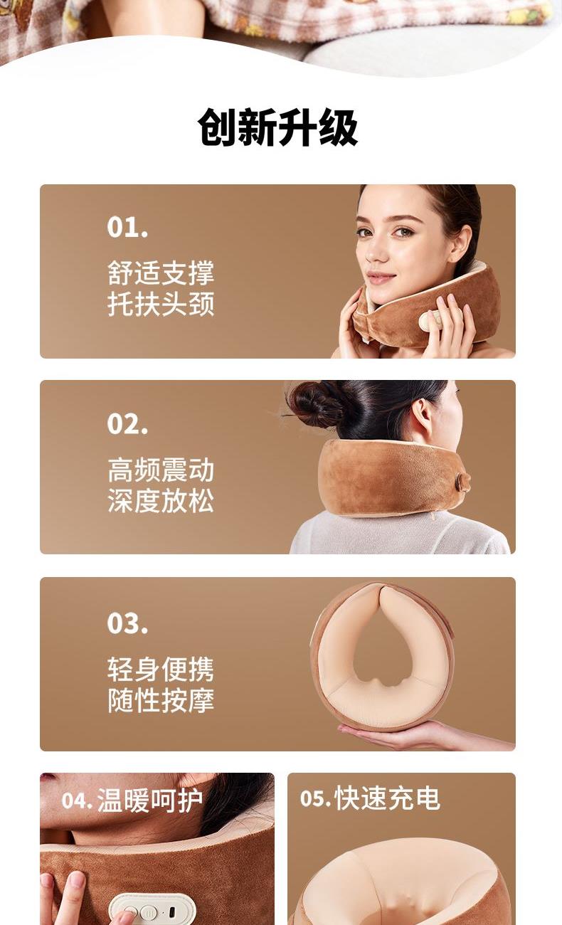 1、按摩枕采用温和的按摩手法,温暖颈部,缓解肌肉僵硬;