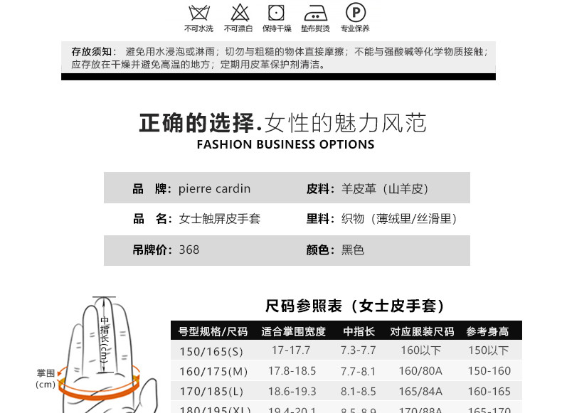 面料:羊皮革(山羊皮) 里料:吸湿发热里 颜色:黑色 型号:894292100C