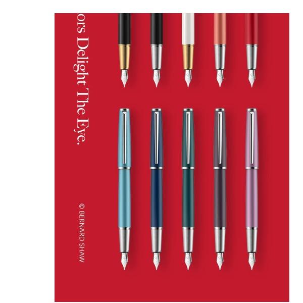 型号:星耀系列墨水笔 类型:螺纹上墨式墨水笔 重量:墨水/宝珠笔31g/35g 颜色分类:曜夜黑金曜夜黑银黎雾灰松苔绿夜幕蓝伦敦红珊瑚橘丁香紫尼斯蓝云雾白 书写粗细:F尖 套餐类型:官方标配 包装方式:鸿运笔记本礼盒装 适用场景:送礼书写 钢笔笔尖成分:不锈钢 /地区:笔尖种类:标准型 适用人群:文艺青年 上墨方式:旋转吸墨笔杆材质:金属笔尖嵌入方式:明尖 笔身纹理:磨砂墨水材质:非碳素墨水