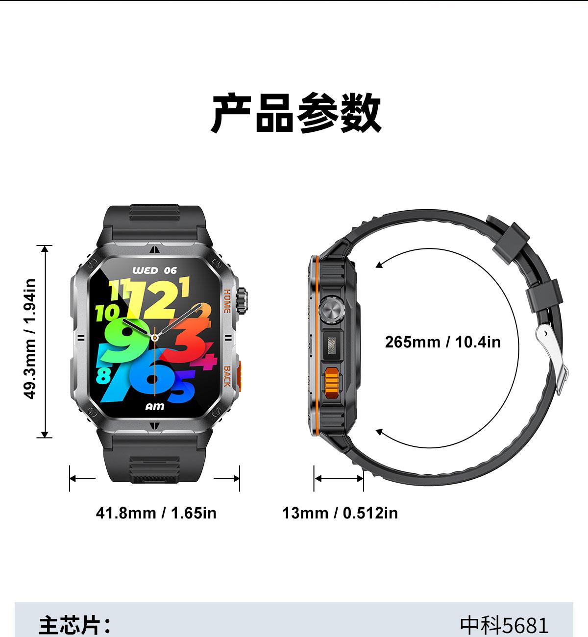智能手表尺寸(mm):49.3*41.8*13mm,表带总长255mm,宽22mm