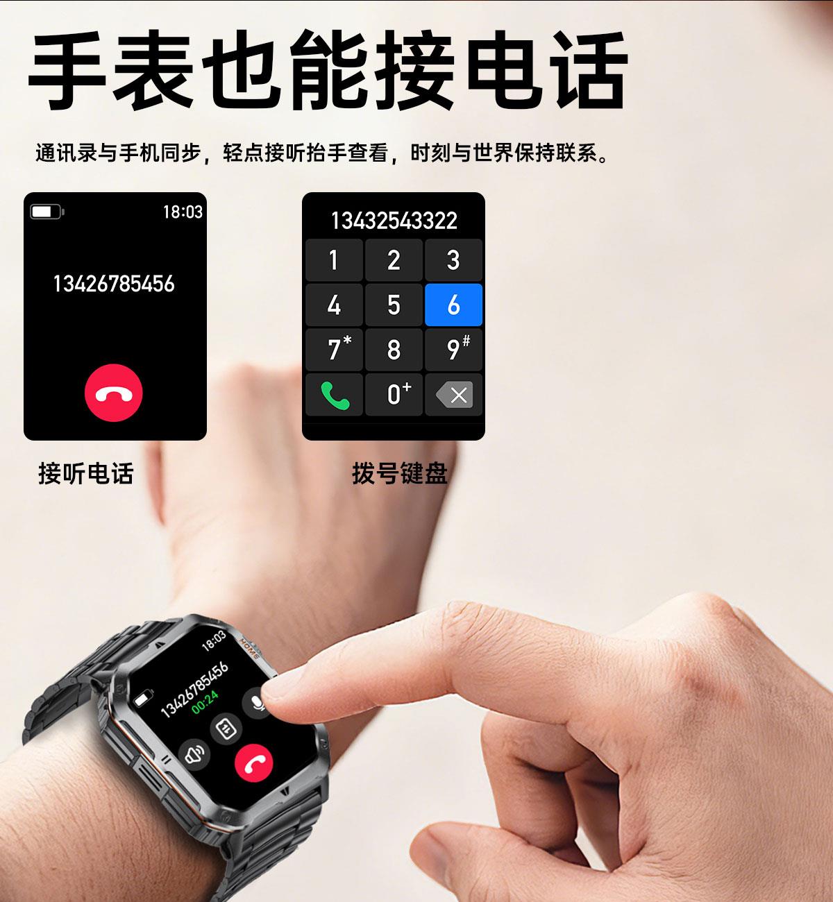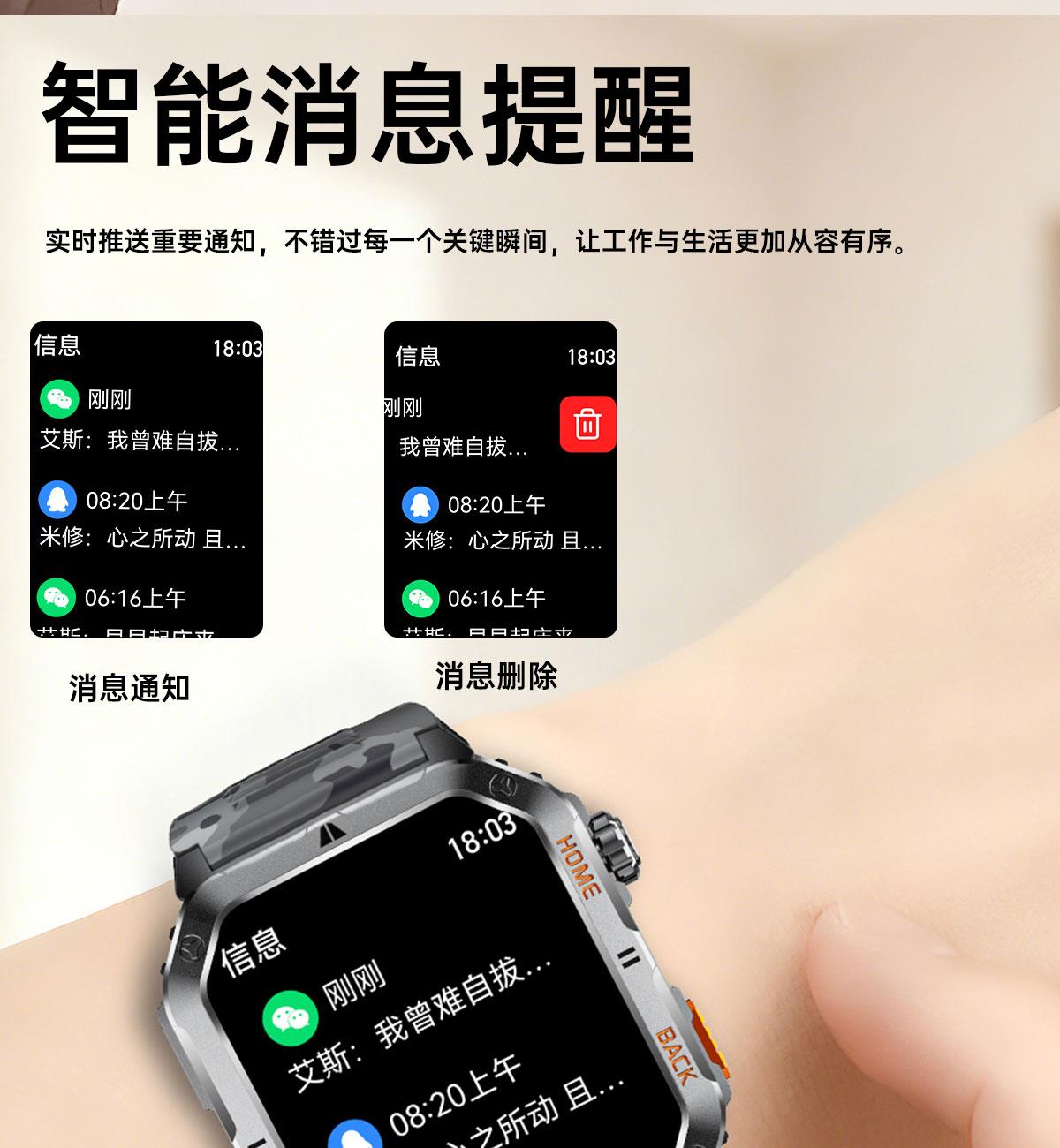 LIGE利格军工系带手电筒蓝牙通话智能手表BWMT62