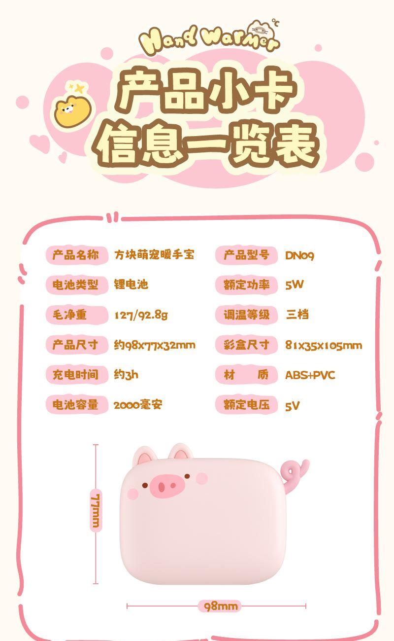 电池类型:锂电池 额定功率:5W 毛净重:127/92.8g 调温等级:三档(50℃、60℃、70℃) 产品尺寸:约98x77x32mm 彩盒尺寸:81X35x105mm 充电时间:约3h 材 质:ABS+PVC 电池容量:2000毫安 额定电压:5V 外箱尺寸:29.5x24.5x45cm 整箱毛净重:10.3/9.3kg 备注:本产品需整箱发货