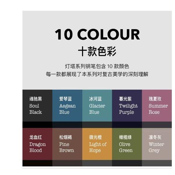 型号:灯塔系列墨水笔 类型:螺纹上墨式墨水笔 重量:墨水/宝珠笔43g/47g 颜色分类:微光橙凛冬灰橄榄绿爱琴蓝龙血红魂驰黑 书写粗细:F尖 套餐类型:官方标配 包装方式:鸿运笔记本礼盒装 适用场景:送礼书写钢笔笔尖成分:铱金笔 /地区:笔尖种类:标准型 适用人群:商务办公人士 上墨方式:旋转吸墨笔杆材质:金属笔尖嵌入方式:明尖 笔身纹理:格子纹墨水材质:非碳素墨水