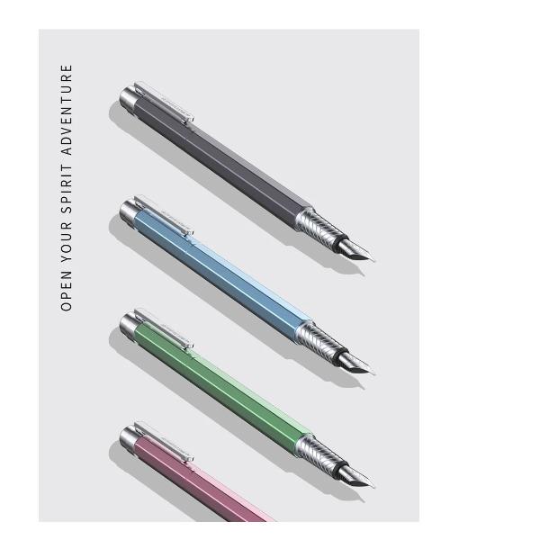 整笔材质:铝铜笔身:经典八角设计笔盖:卡扣嵌套设计笔握:24mm中距笔握