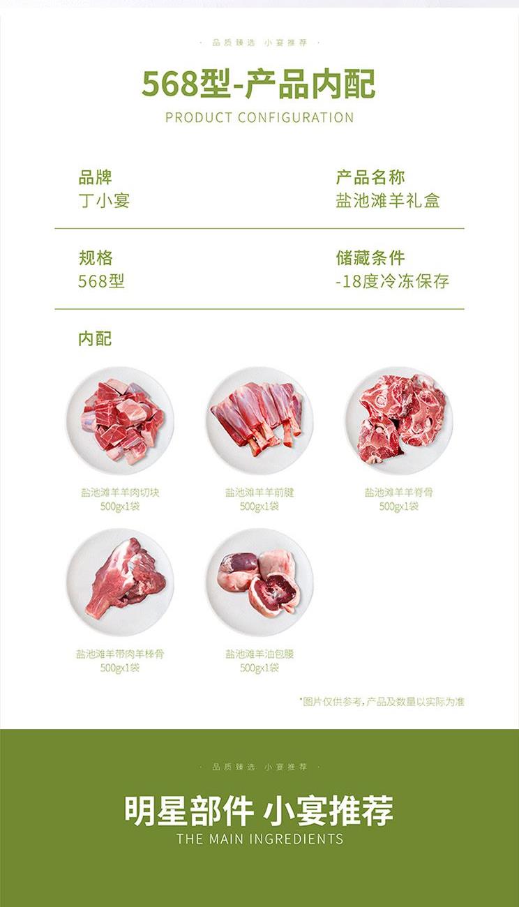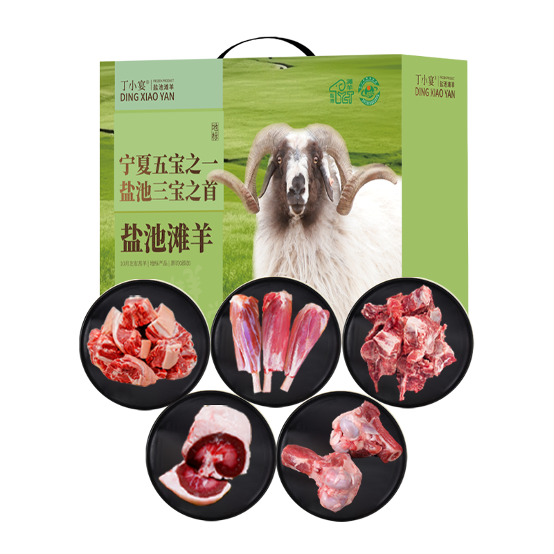 盐池滩羊羊肉切块500gx1袋 盐池滩羊羊前腱500gx1袋 盐池滩羊羊脊骨500gx1袋 盐池滩羊带肉羊棒骨500gx1袋 盐池滩羊油包腰500gx1袋 包装(泡沫箱+礼盒)