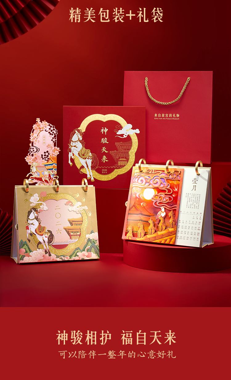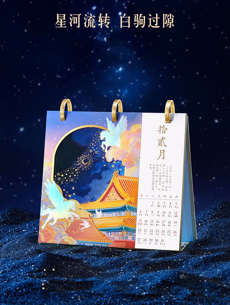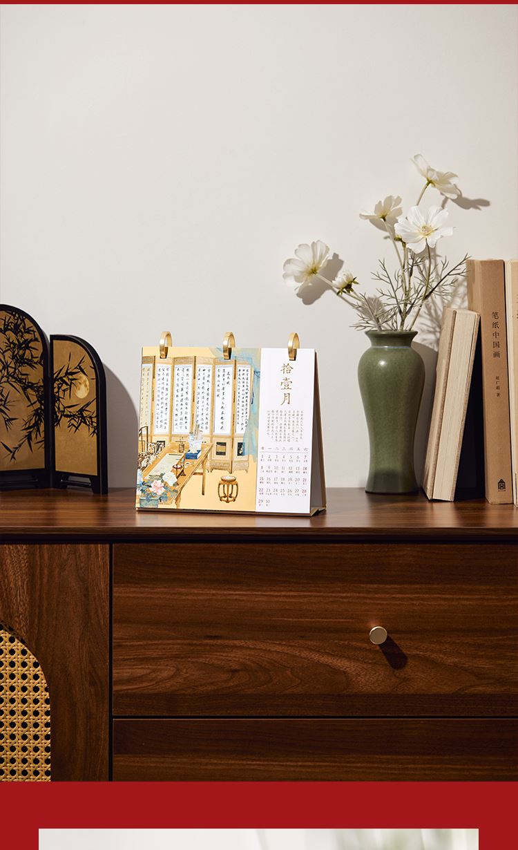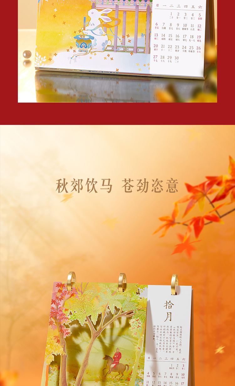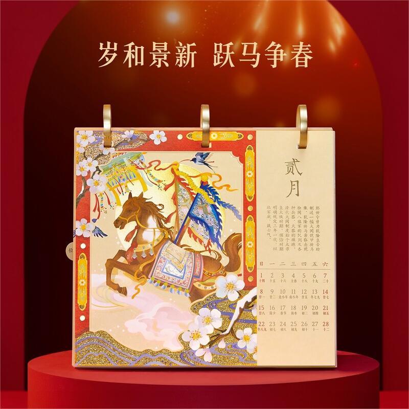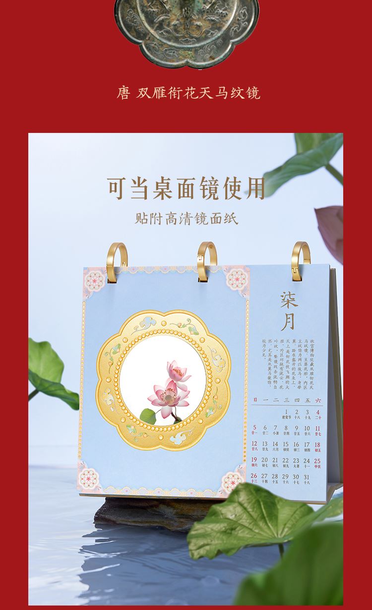 组成:1 套台历包含台历 1 本、纸书签 1 张、纸花插 2 张 材质:台历采用特种纸,金属环为锌合金 包装:配备精装盒与手提袋 规格:台历内页尺寸约 21×19cm,包装盒尺寸约 22.5×22.5×4.2cm 包装:约35x15x5cm
