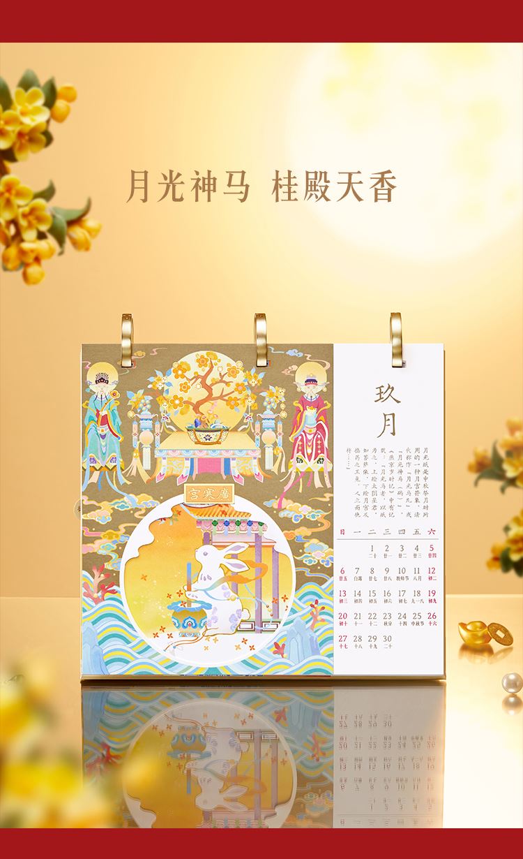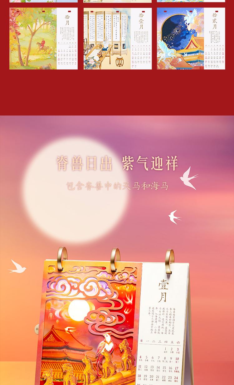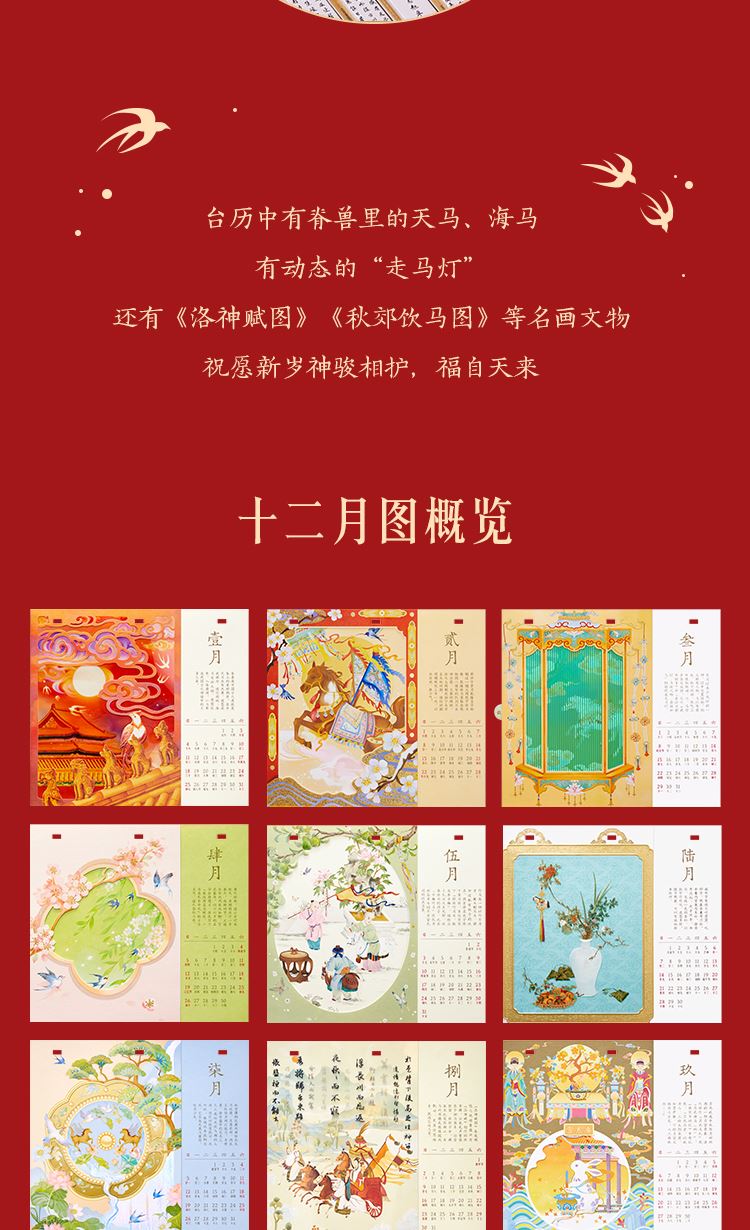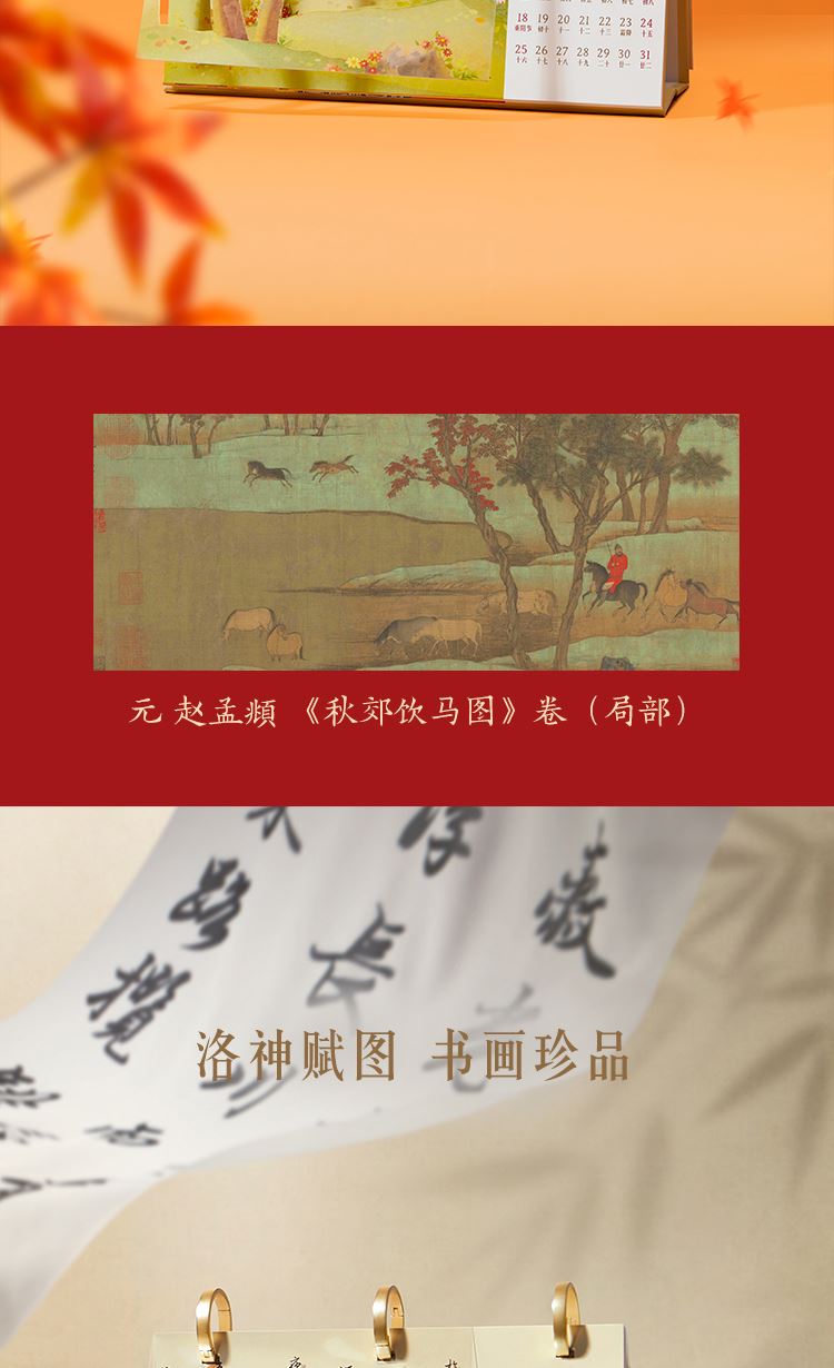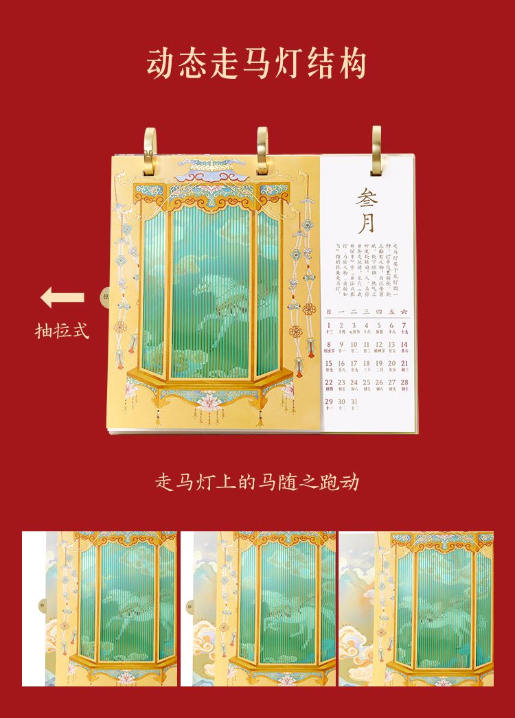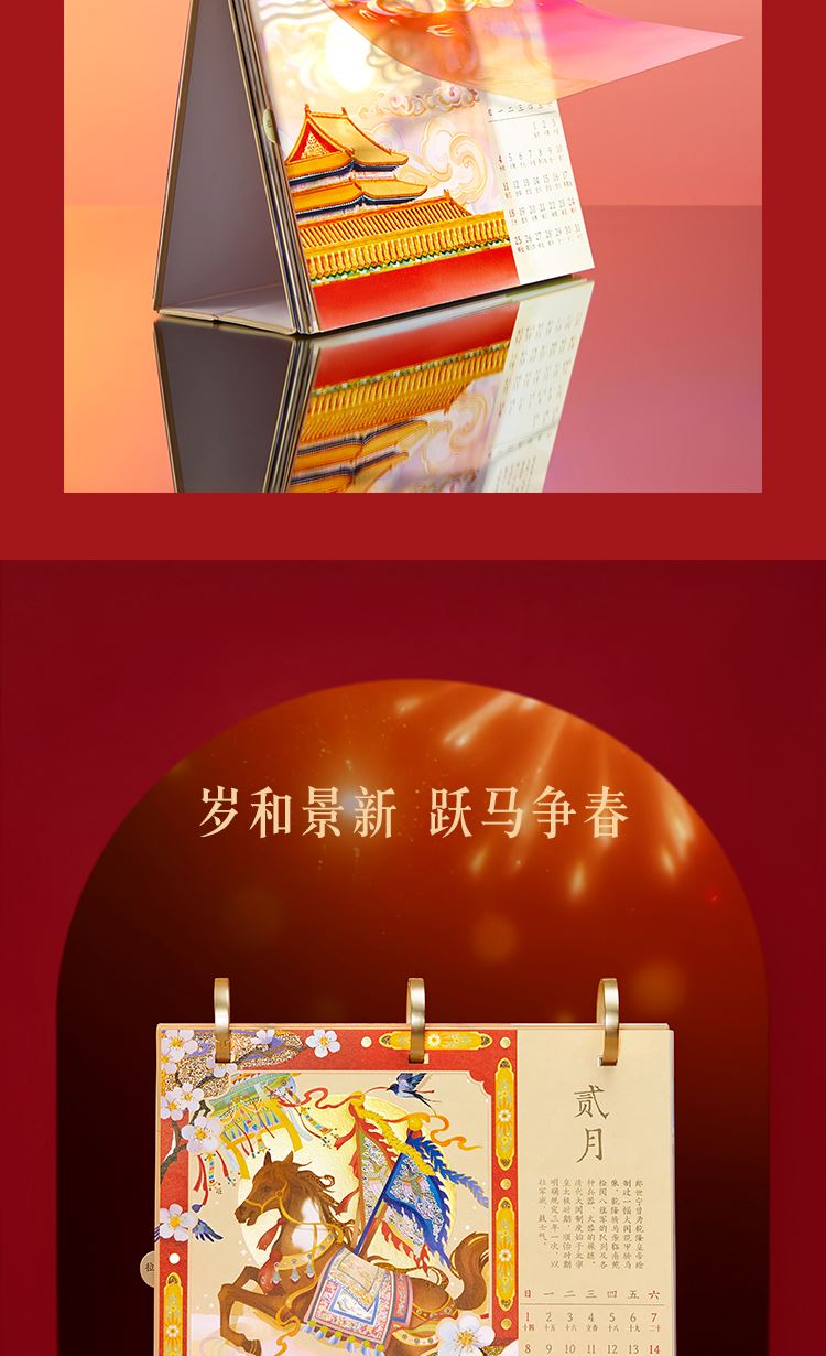 组成:1 套台历包含台历 1 本、纸书签 1 张、纸花插 2 张 材质:台历采用特种纸,金属环为锌合金 包装:配备精装盒与手提袋 规格:台历内页尺寸约 21×19cm,包装盒尺寸约 22.5×22.5×4.2cm 包装:约35x15x5cm
