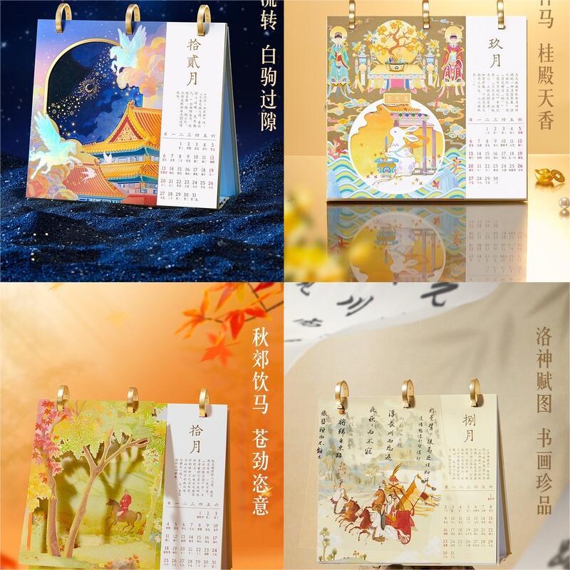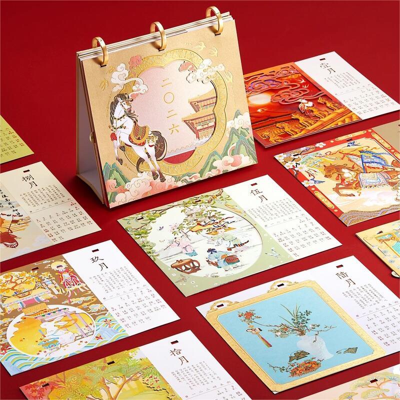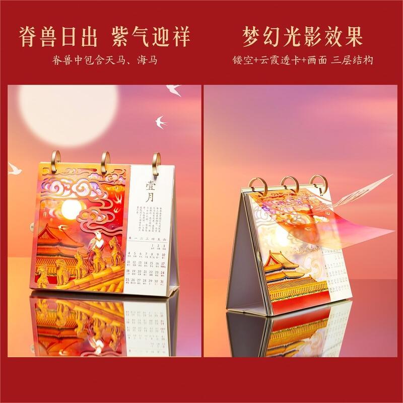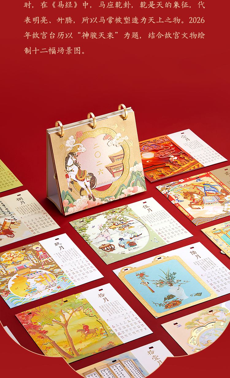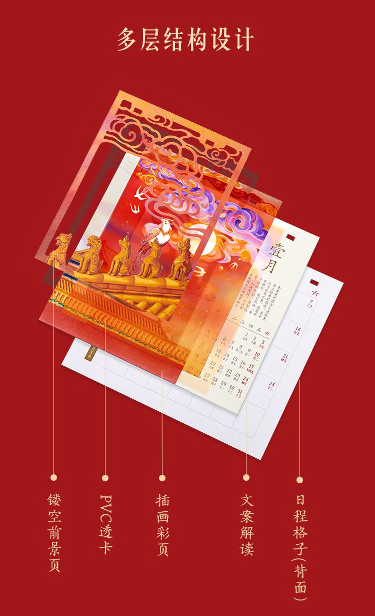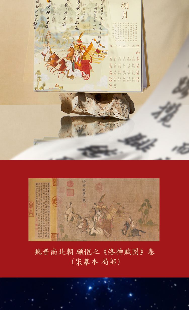 组成:1 套台历包含台历 1 本、纸书签 1 张、纸花插 2 张 材质:台历采用特种纸,金属环为锌合金 包装:配备精装盒与手提袋 规格:台历内页尺寸约 21×19cm,包装盒尺寸约 22.5×22.5×4.2cm 包装:约35x15x5cm