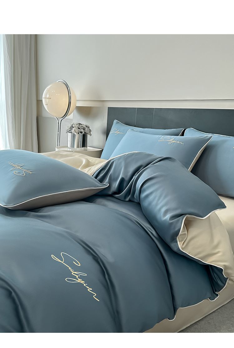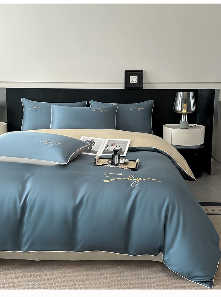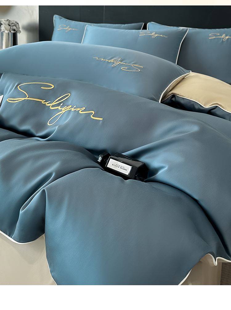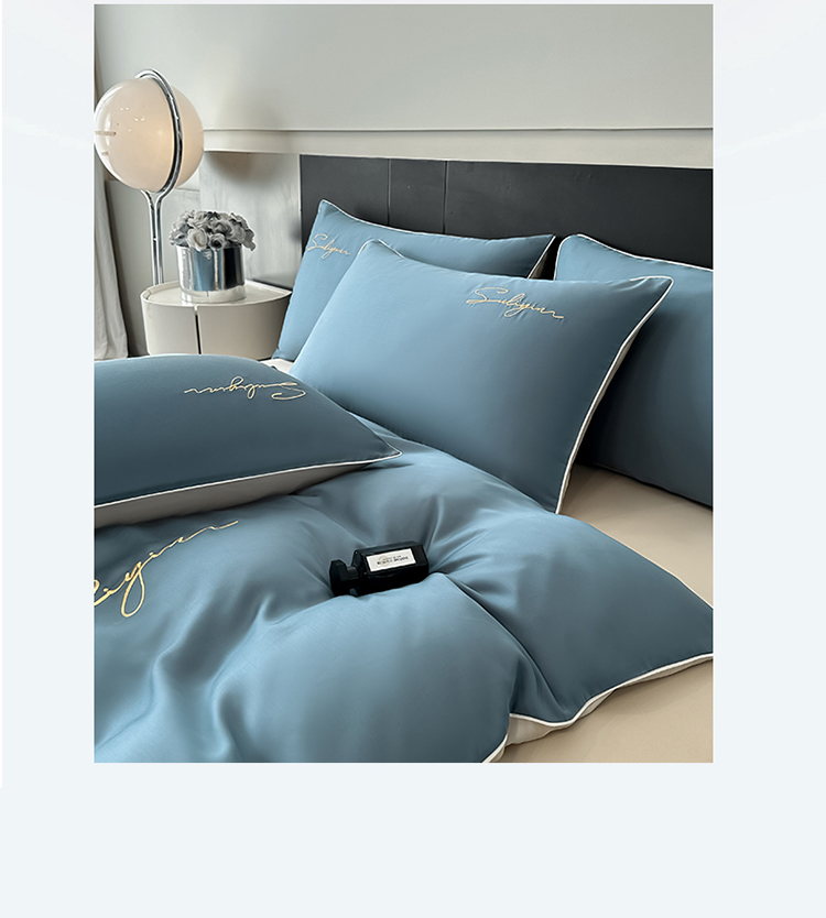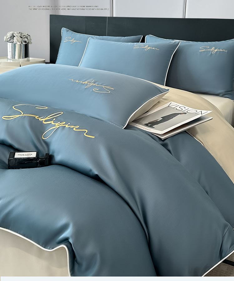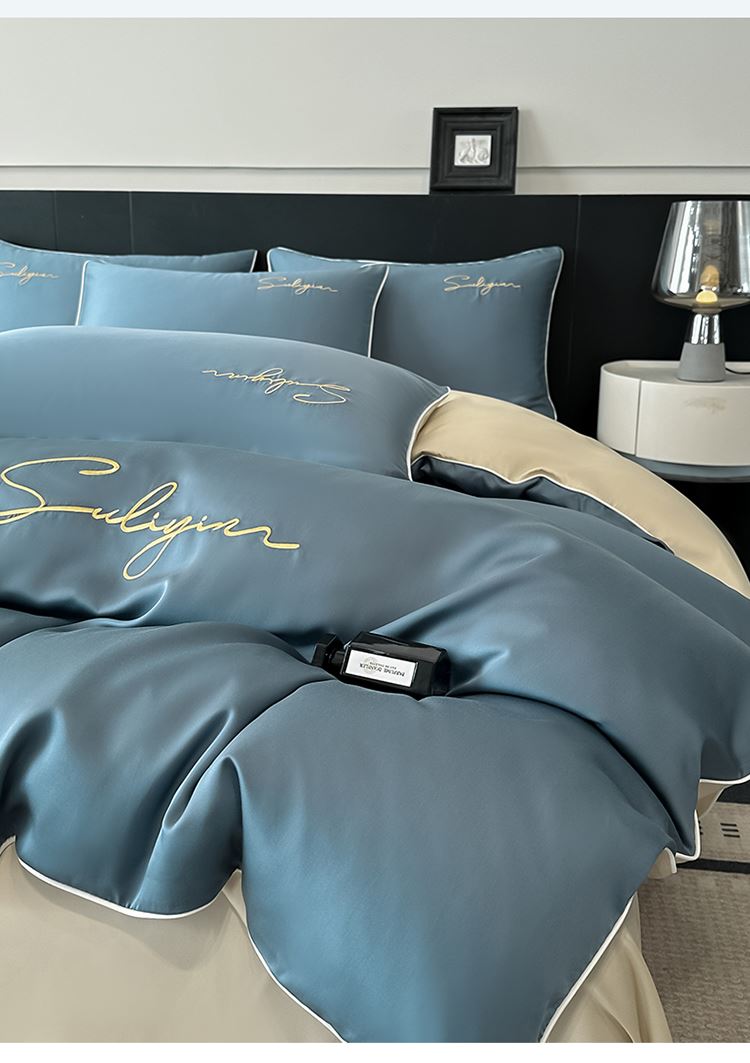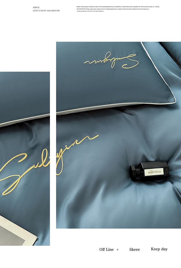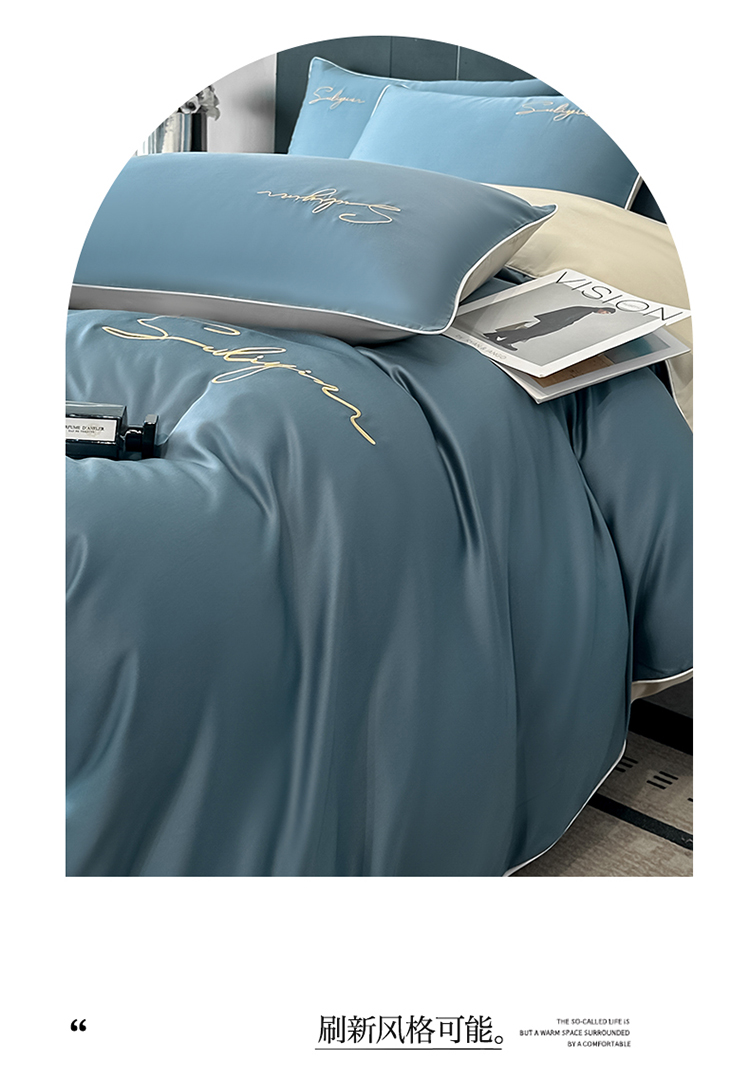 1:打造高颜值空间:享受浪漫生活: 水洗冰丝刺绣四件套系列 2:柔软与舒适兼得宠爱加倍 生活需要浪漫需要爱更需要那份从容不迫的优雅 尺寸:被套:200*230cm*1 床单:230*245cm*1 枕套:48*74cm*2 包装:彩盒