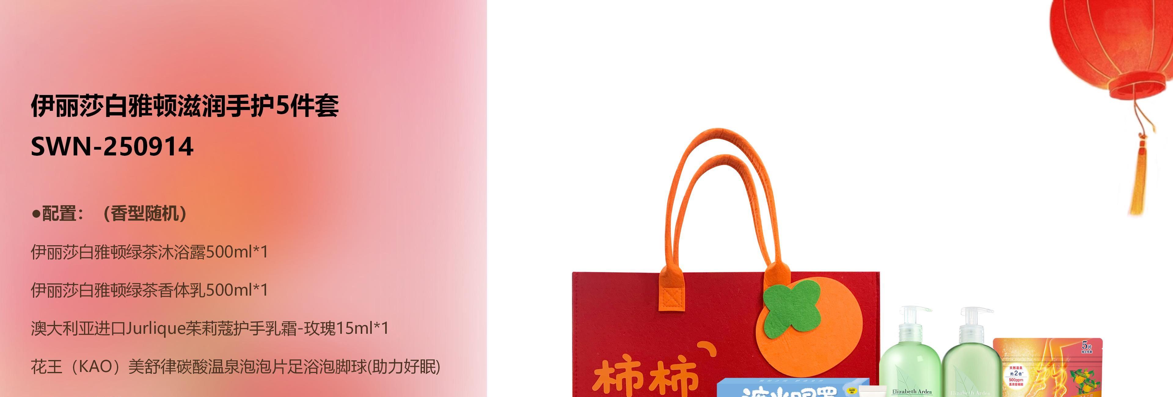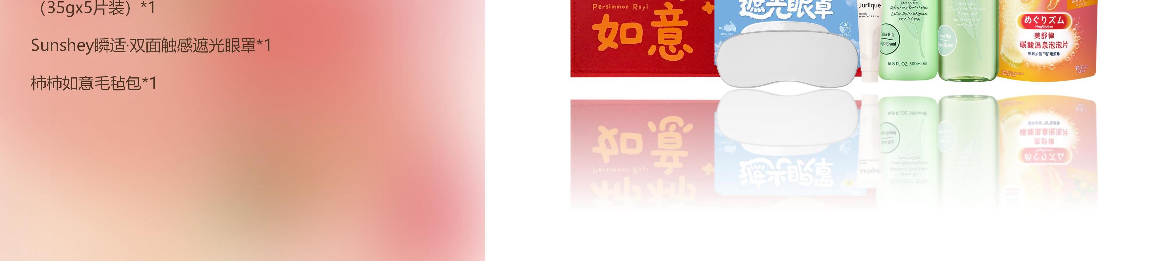 配置:(香型随机) 伊丽莎白雅顿绿茶沐浴露500ml*1 伊丽莎白雅顿绿茶香体乳500ml*1 澳大利亚进口Jurlique茱莉蔻护手乳霜-玫瑰15ml*1 花王(KAO)美舒律碳酸温泉泡泡片足浴泡脚球(助力好眠)(35gx5片装)*1 Sunshey瞬适·双面触感遮光眼罩*1 柿柿如意毛毡包*1