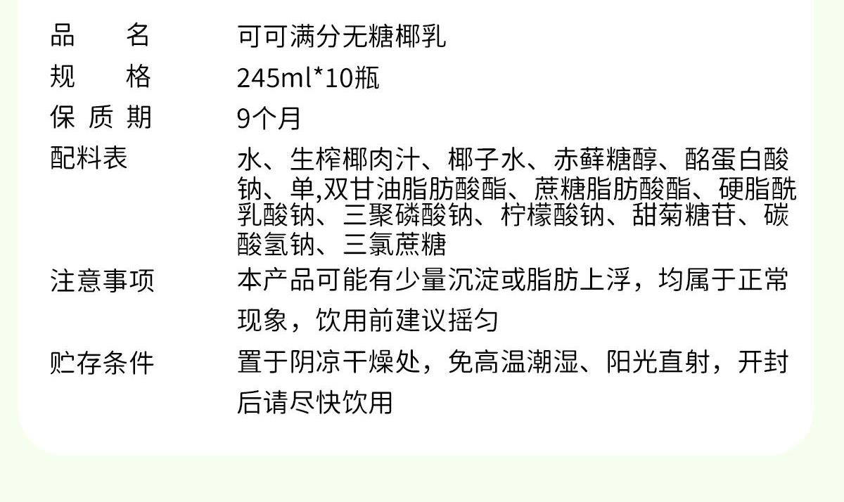 可可满分无糖椰乳245*10瓶