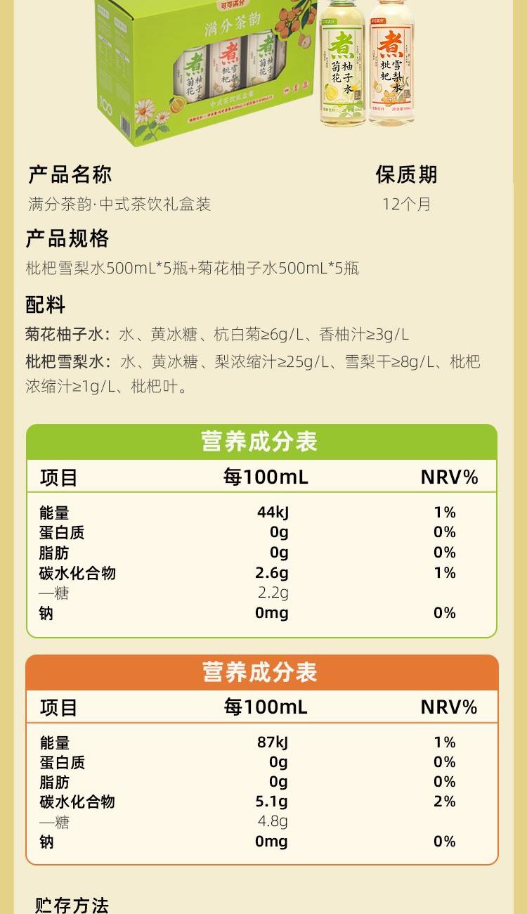 中式茶饮礼盒(绿)(枇杷雪梨5瓶+菊花柚子5瓶)