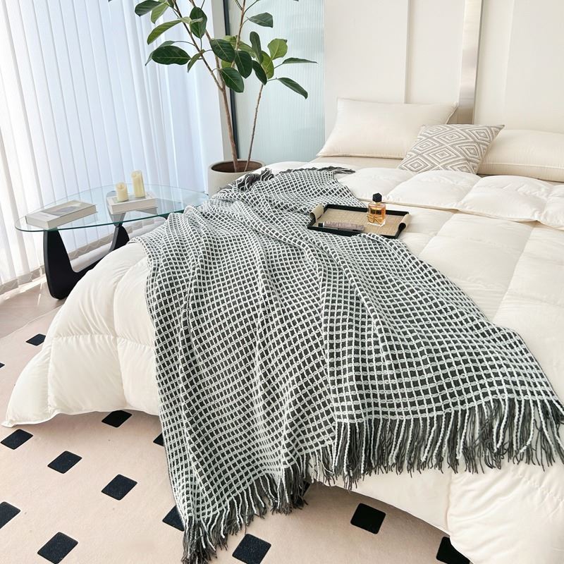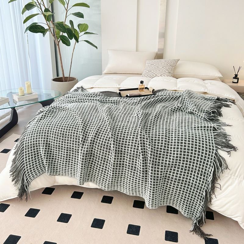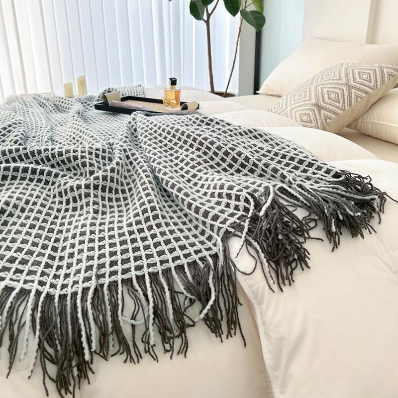 萱遇家纺流苏针织盖毯-棕Q-C7104
